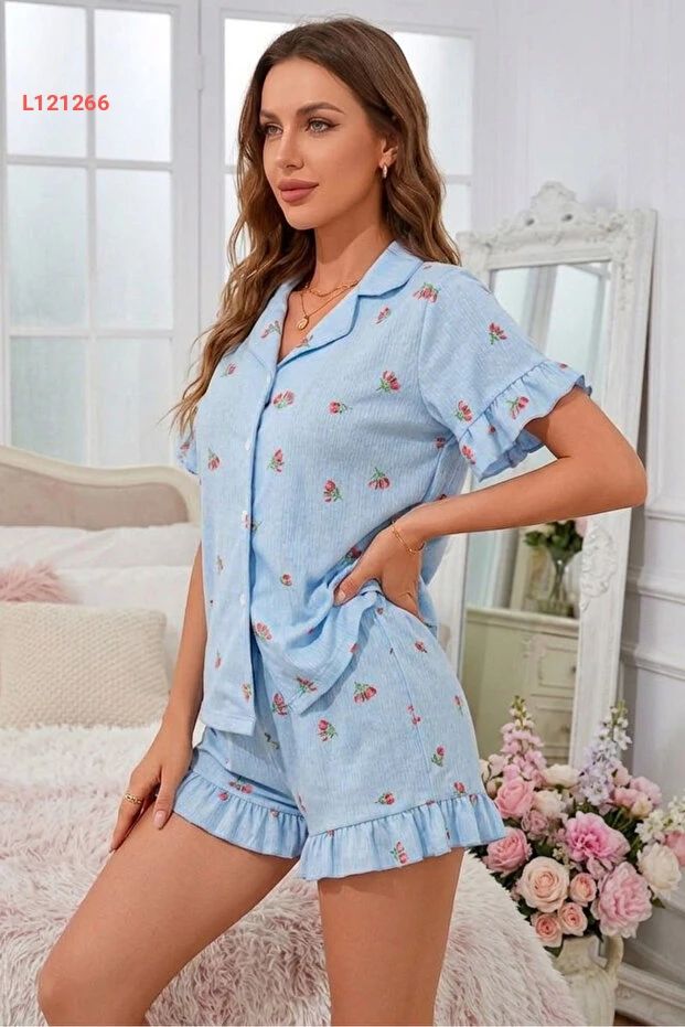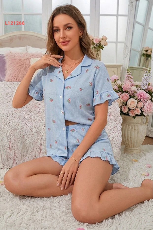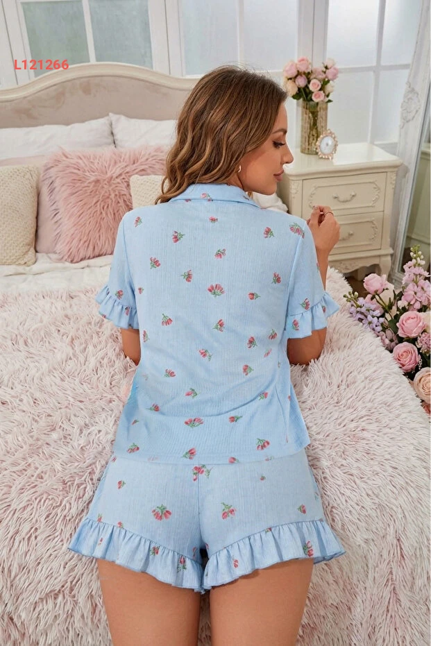 بيجامة قصيرة زر دوجم مع نقوش زهور التوليب من بيلا نوتي