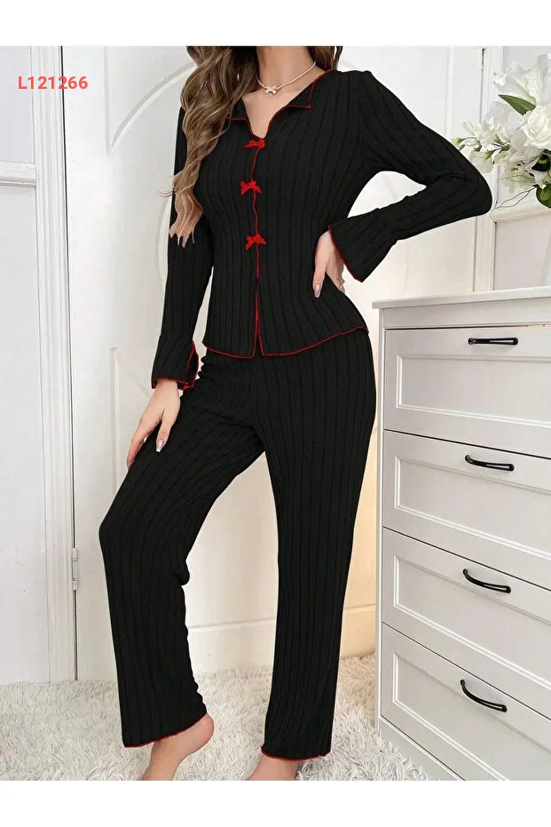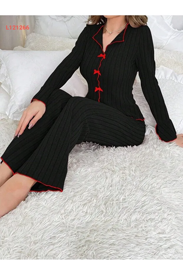 استمتع بأمسية من الراحة والأناقة مع طقم البيجاما BELLA NOTTE المصنوع من القطن الناعم، والذي يتميز بتفاصيل الفيونكة الحمراء الجذابة. تصميمه العصري يضمن لك الراحة في جميع المواسم، بينما تضيف لمسة الموضة لمسة فريدة إلى خزانة ملابسك. مثالي للاسترخاء في المنزل أو كهدية مميزة لأحبائك!