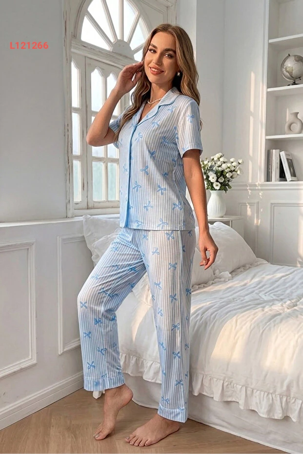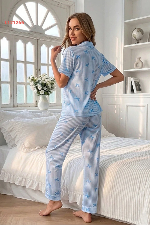 مجموعة بيجاما صيفية بتصميم فيونكة من بيلا نوتي بظلال الأزرق الناعم