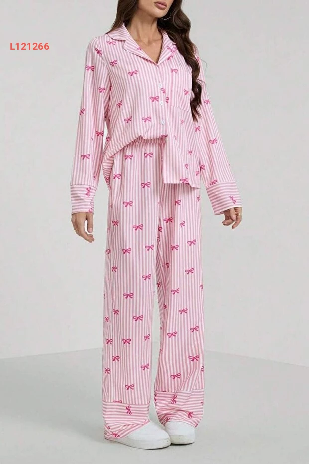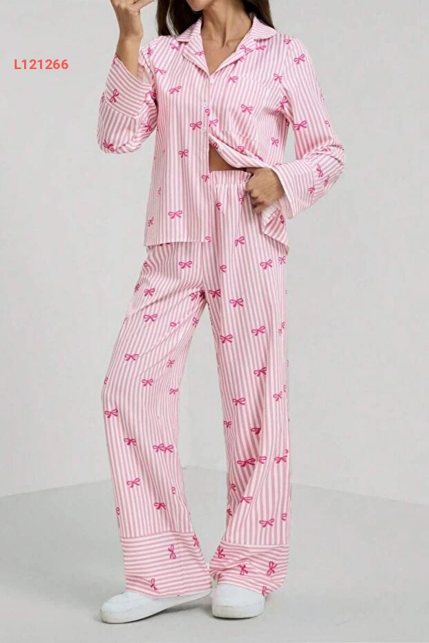 بيجاما مطبوعة بخطوط وقرنفلية مزينة برباط من بيلّا نوتي