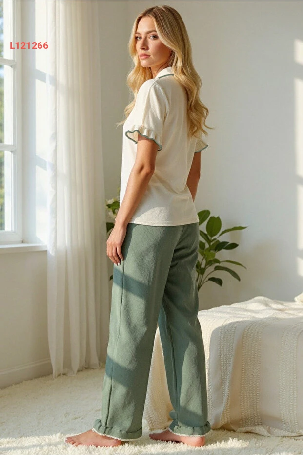 استمتع بأفضل ليالي النوم مع بيجامة BELLA NOTTE القصيرة الأكمام وطويلة الأزرار، المصممة بأناقة لتمنحك الراحة المطلقة. مصنوعة من أقمشة ناعمة ومريحة، توفر هذه البيجامة حرية الحركة وتضفي لمسة من الفخامة على لياليك. تصميمها العصري يجعلها مثالية للاسترخاء أو الاستمتاع بأوقات هادئة في المنزل.