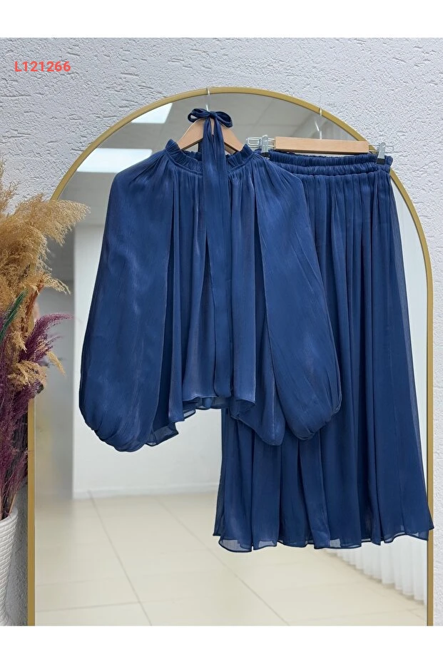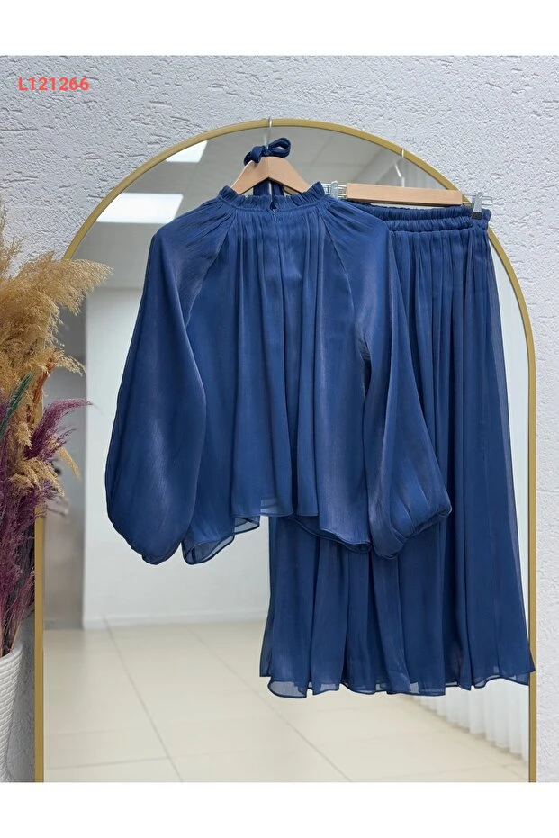 اكتشفي أناقتك مع طقم BENAHOLL Barrie الذي يجمع بين الأنوثة والراحة. مصنوع من خامات عالية الجودة، يتميز بأكمام البالون الجذابة وتنورة الجانجان لتحصلي على إطلالة مميزة تناسب جميع المناسبات. تميّزي بلونها navy الراقي الذي يضفي لمسة من الفخامة على مظهرك.