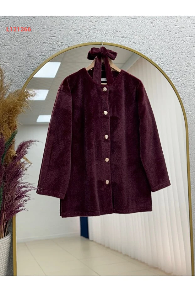 جاكيت أنغورا معدني الأزرار من بيناهول - BN4531 لون بورغندي
