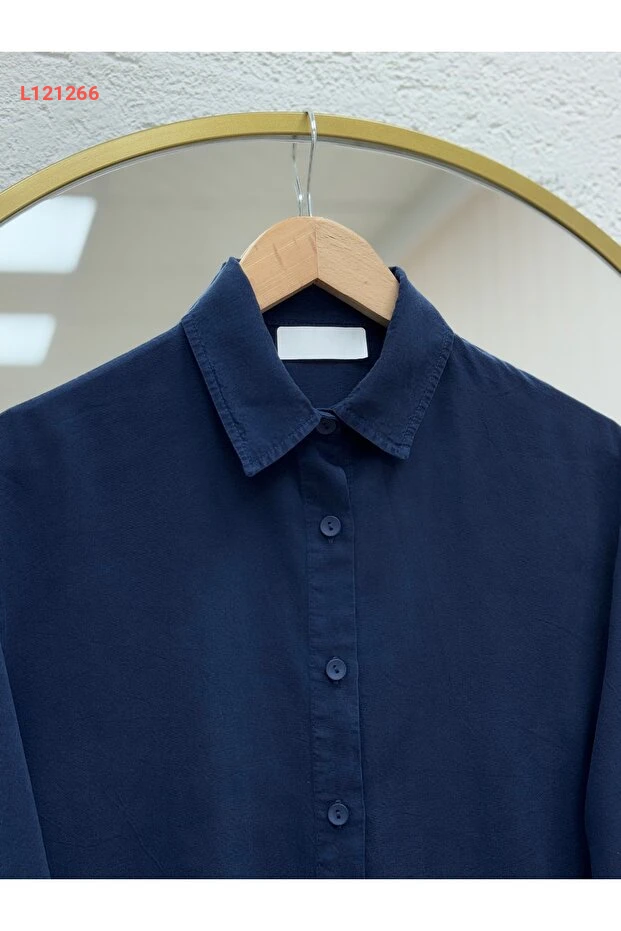 قمصان بنهول سيمة بتصميم قصير من الأمام وطويل من الخلف - لون أزرق داكن