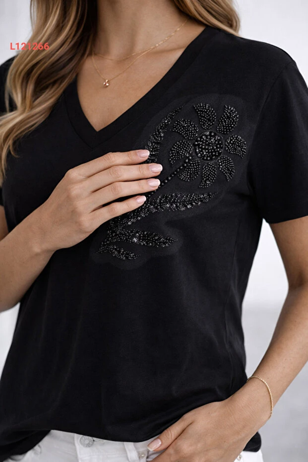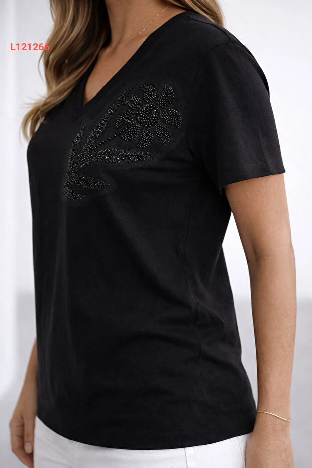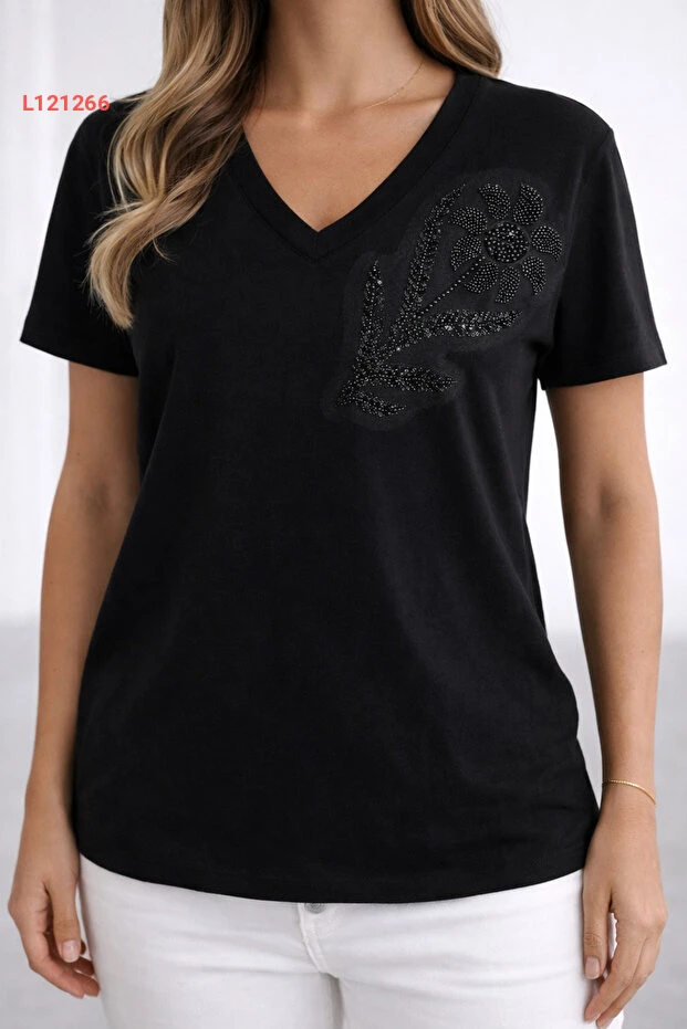 تقدم تي شيرت "بنييدتو" الجديدة للنساء، المصنوعة من قماش المودال القطني الفاخر، مزيجًا مثاليًا من الراحة والأناقة. تصميمها مزين بنقوش زهور رائعة وأحجار لامعة، مما يضيف لمسة جمالية مميزة تناسب الإطلالات اليومية. استمتعي بالراحة والثقة خلال يومك مع هذه القطعة الأساسية التي يجب أن تواجد في خزانة ملابسك!