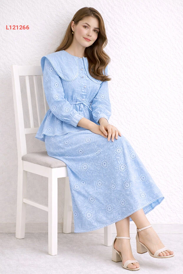 طقم بيبي بياقة فستو مزدوج أزرق A7008