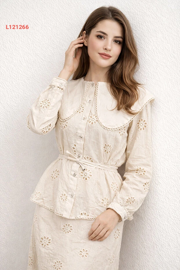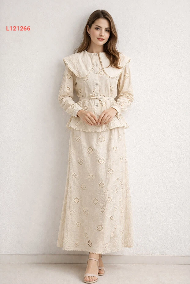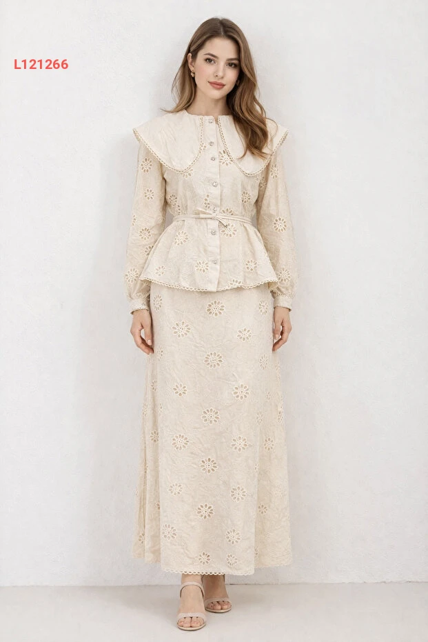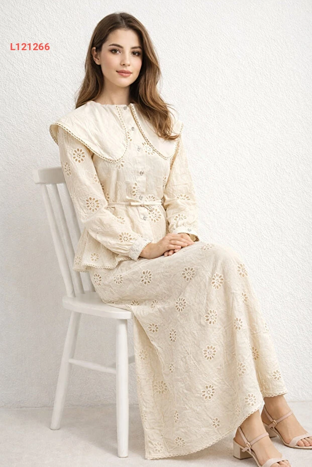 طقم بيبي ياقا فيستو ثنائي رقم A7008 باللون الكريمي