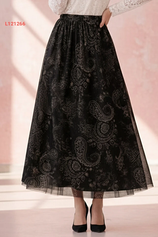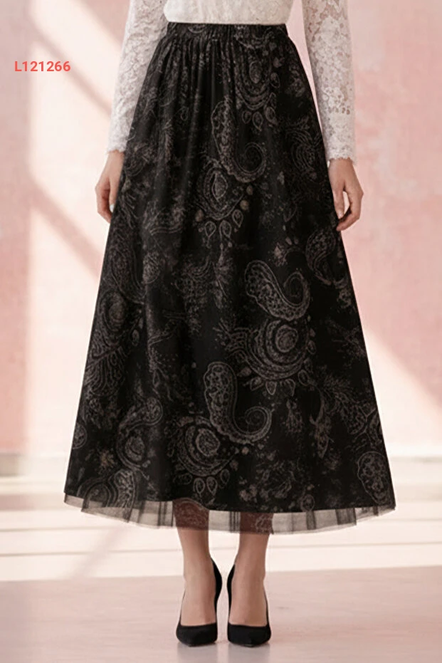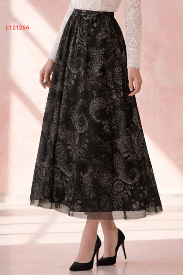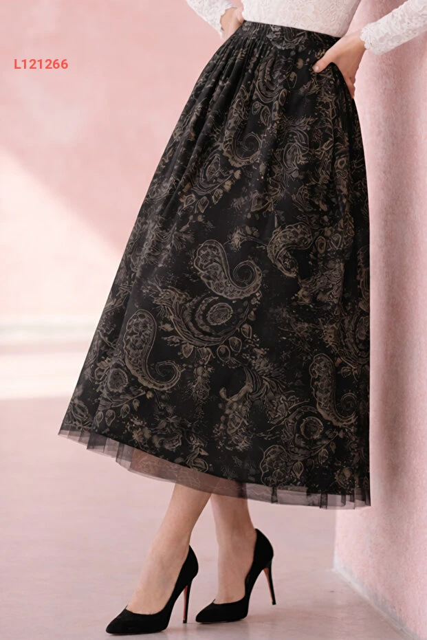 تنورة تول مزخرفة بنقوش - أسود A222