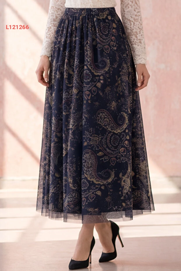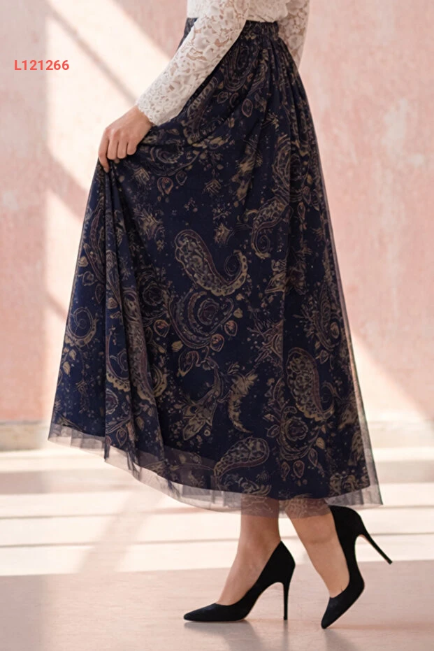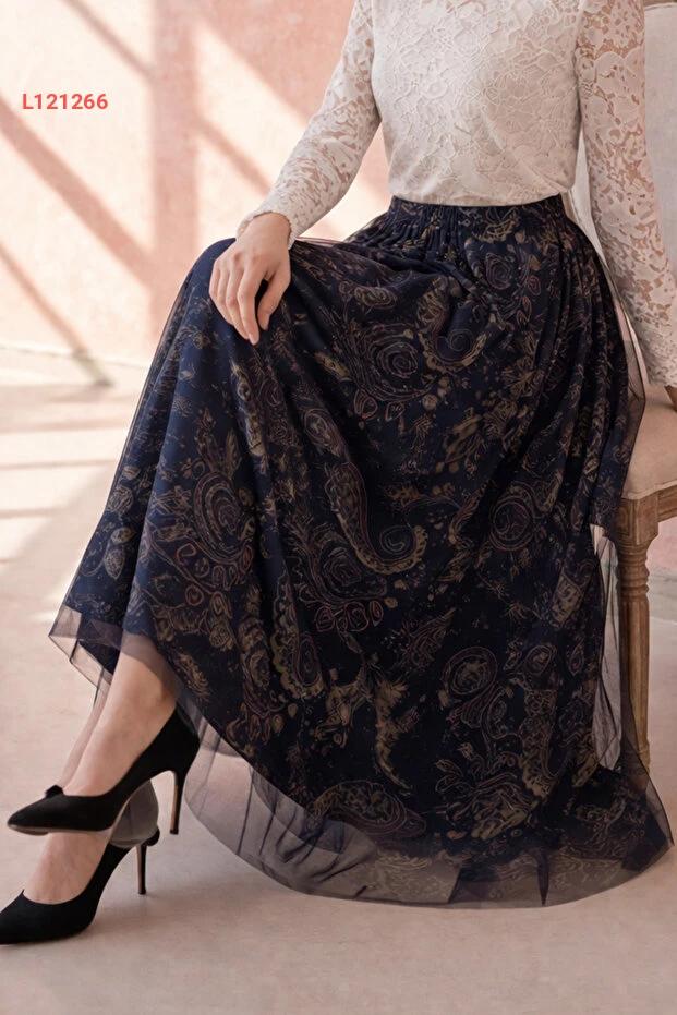 استمتعي بإطلالة أنيقة ومصرية مع تنورة التول المنقوشة A222 باللون الأزرق الداكن من بينغوين. تصميمها الفريد يضيف لمسة ساحرة وجذابة لكل مناسبة، بينما يوفر قماش التول الخفيف راحة لا مثيل لها. اجعلي هذه التنورة خيارك المثالي لإطلالة تجمع بين الأناقة والراحة.