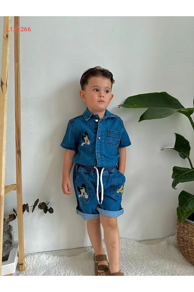 طقم صيفي قصير للأطفال الأولاد من بيرفونزو بقلنسوة مطرزة