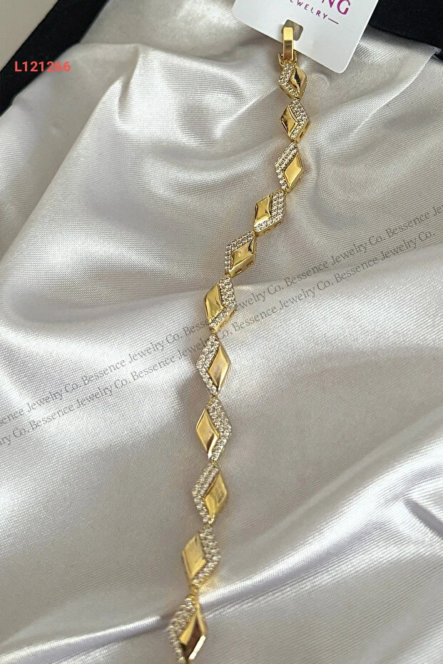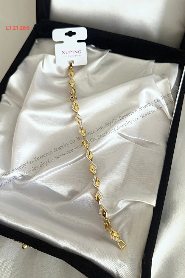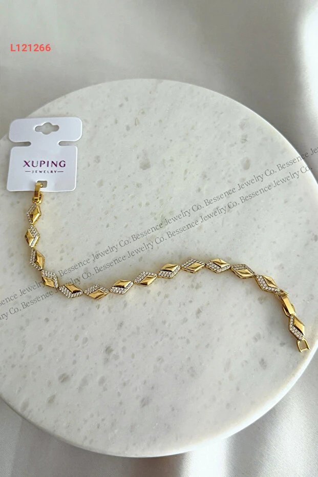 استمتع بتألق الرفاهية مع سوار Bessence Jewelry Co Xuping المصنوع من الذهب عيار 14 قيراط، الذي يتميز بتصميمه العصري على شكل زجزاج. طوله 17 سم مع إمكانية التعديل حتى 2 سم، مما يضمن ملاءمة مثالية تناسب كل الأذواق، ليكون الخيار المثالي لإضافة لمسة من الأناقة لمظهرك في أي مناسبة.