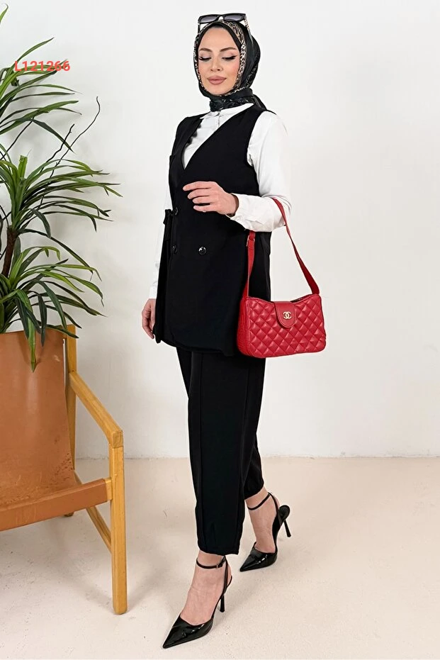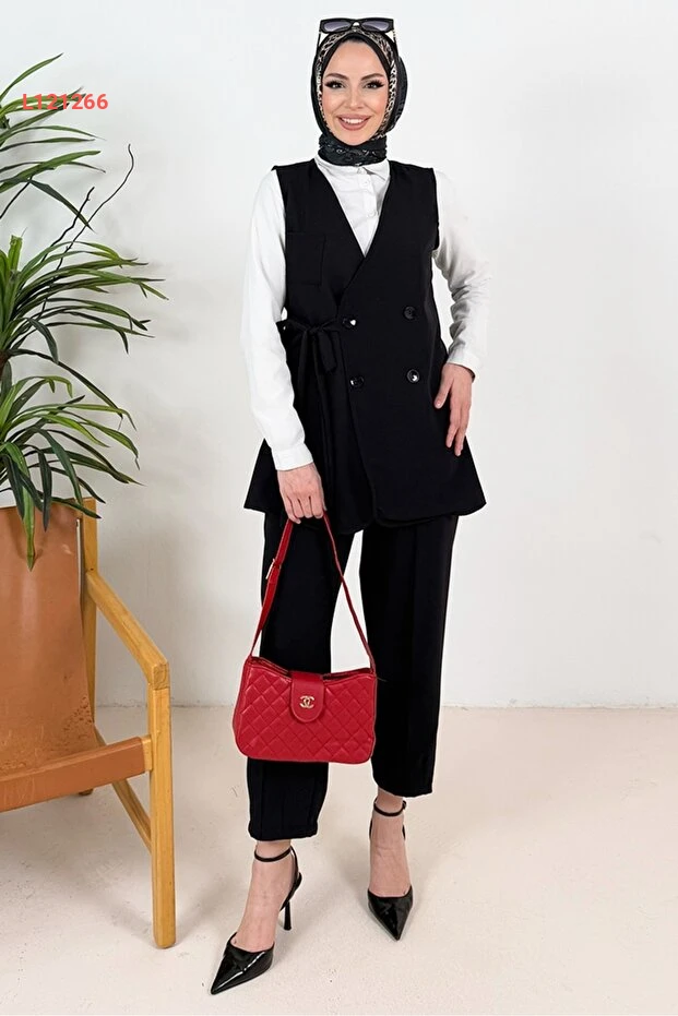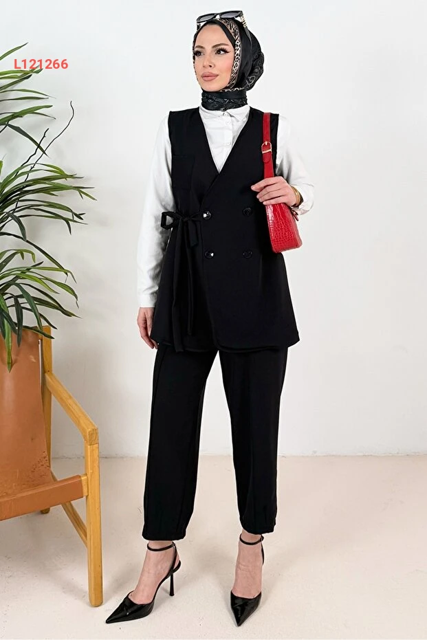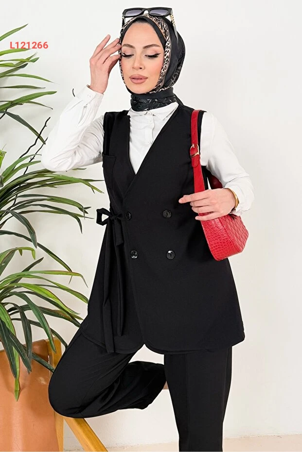 استمتع بإطلالة أنيقة ولافتة مع مجموعة Bestenur Tual Yelek Pantolon İkili Takım باللون الأسود. يجمع هذا الطقم بين الراحة والأناقة، حيث يتميز بيوسف تيرسي مثالية ومواد عالية الجودة، مما يجعله الخيار المثالي للتميز في المناسبات المختلفة. احصلي على لمسة عصرية تدوم طويلاً مع هذا التصميم المتميز.