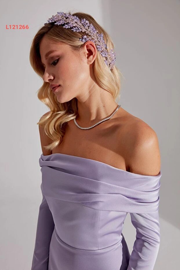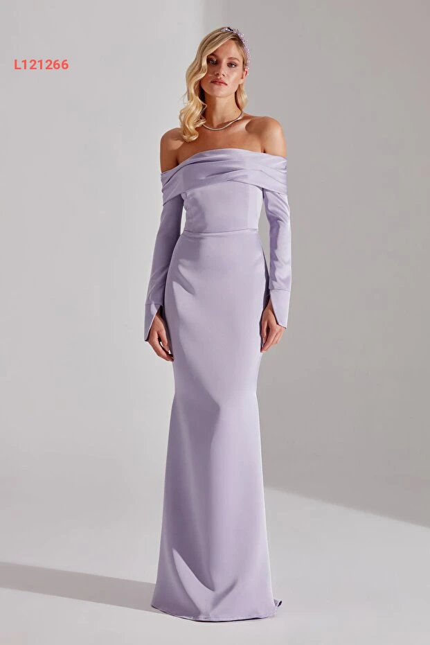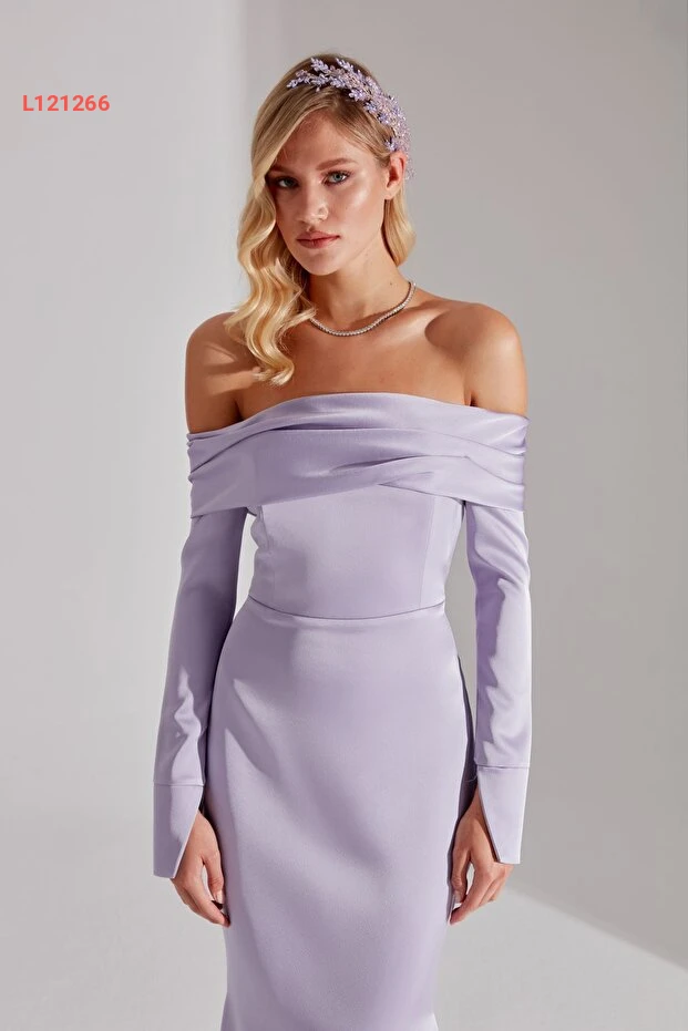 فستان سمكة بأكمام منخفضة بلون ليلكي فاتح من بيتي وسام