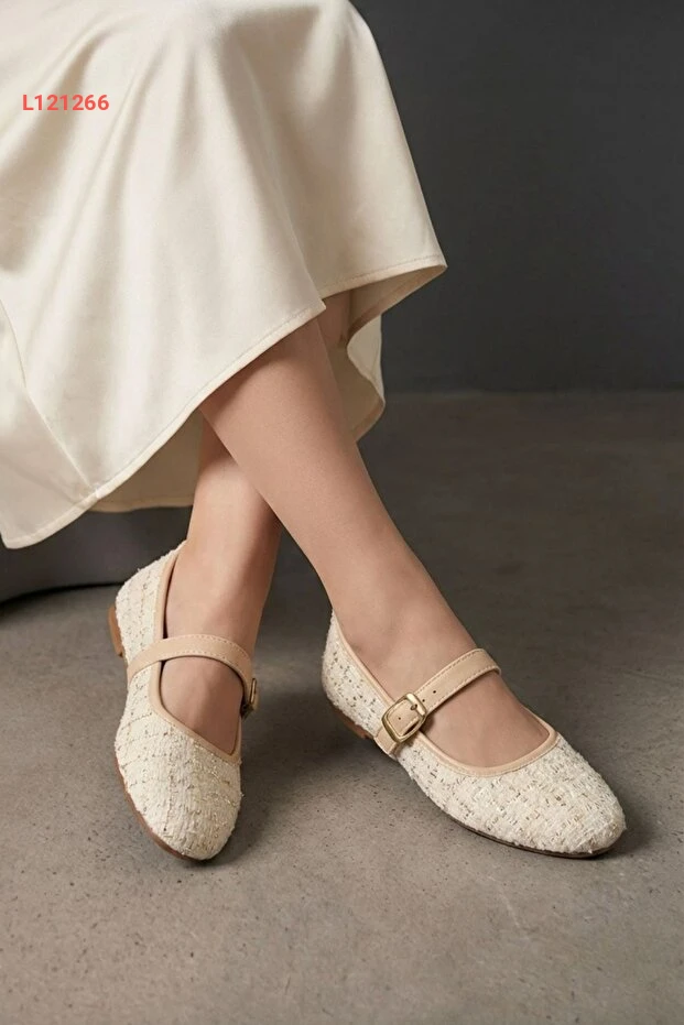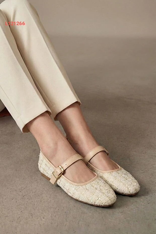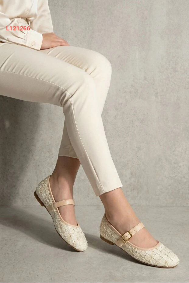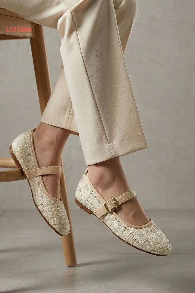 حذاء ماري جين بتصميم أنيق من قماش تيفيت برباط مريح - BYNDLCK01