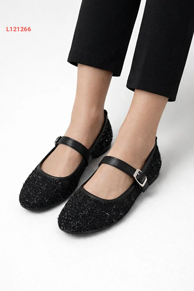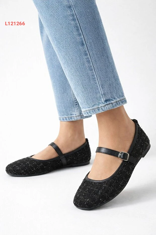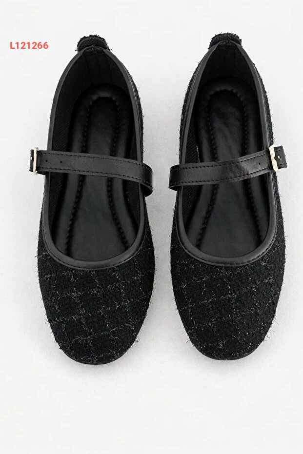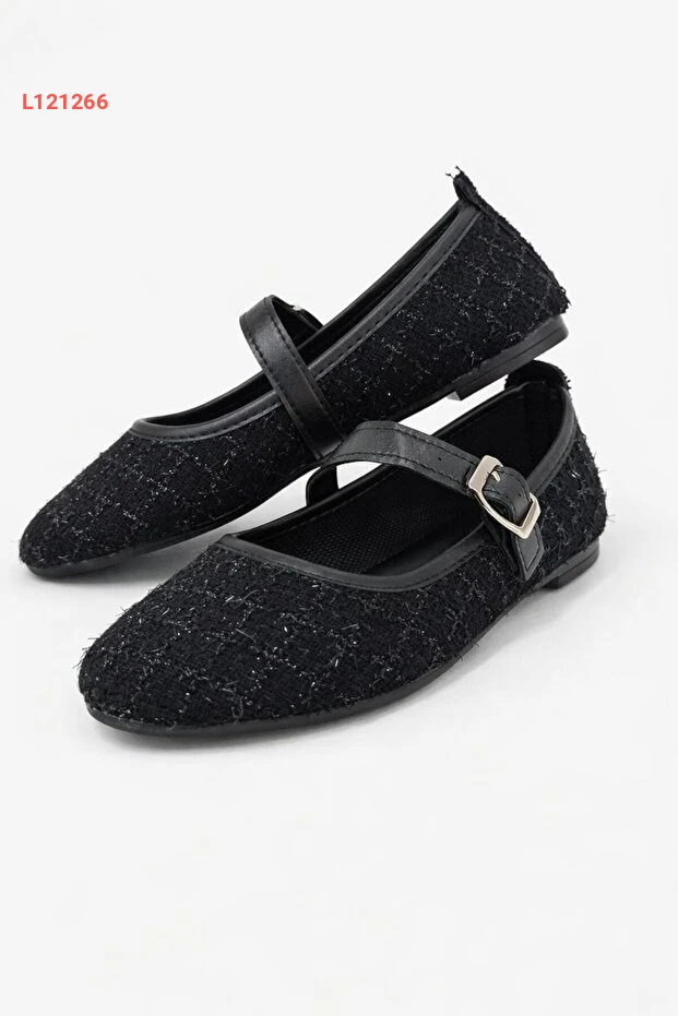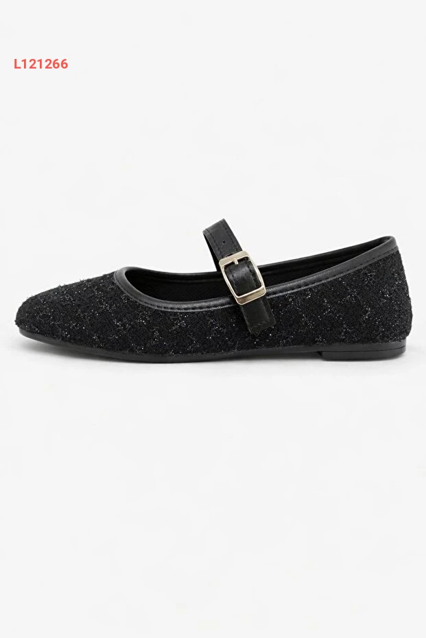 حذاء ماري جان أنيق بتوكه من قماش توفيت الأسود بقاعدة مريحة للارتداء اليومي