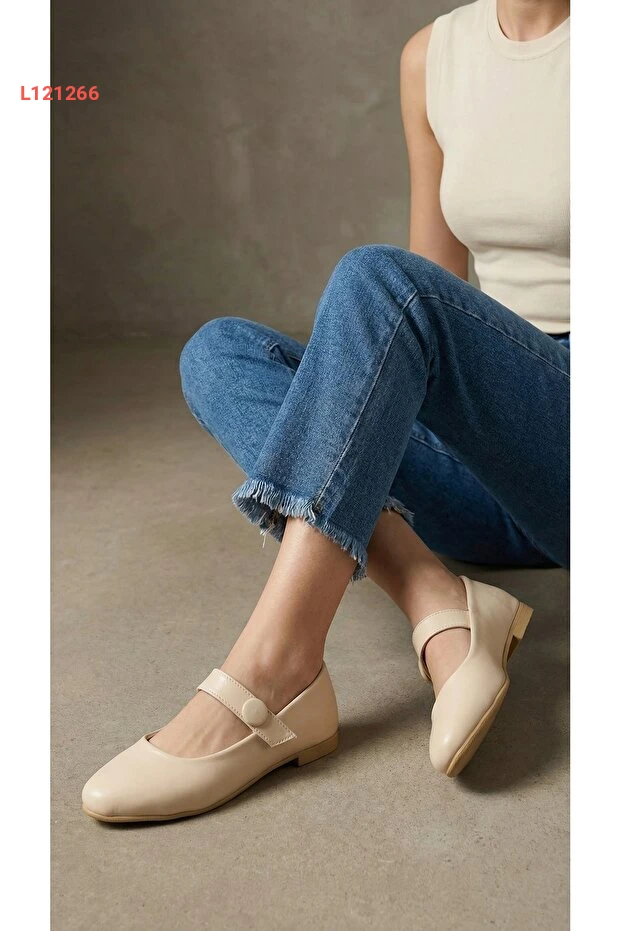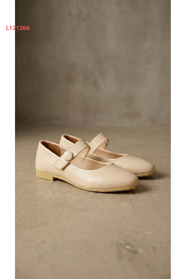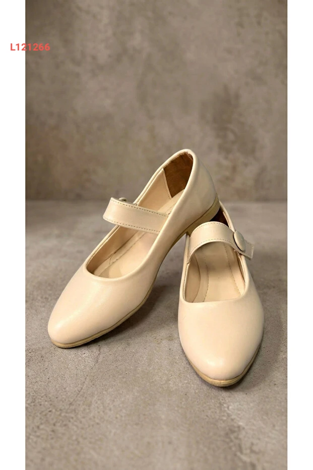 حذاء نسائي بكعب مسطح من جلد كريم مع إبزيم مطاطي - بيوند
