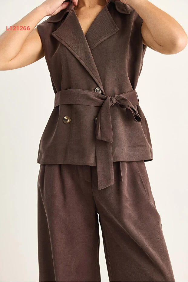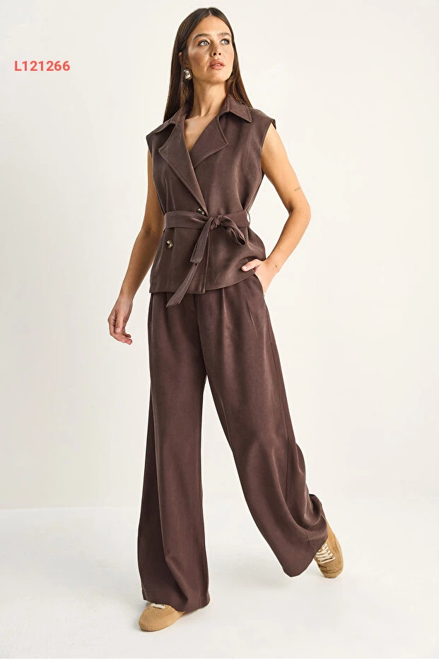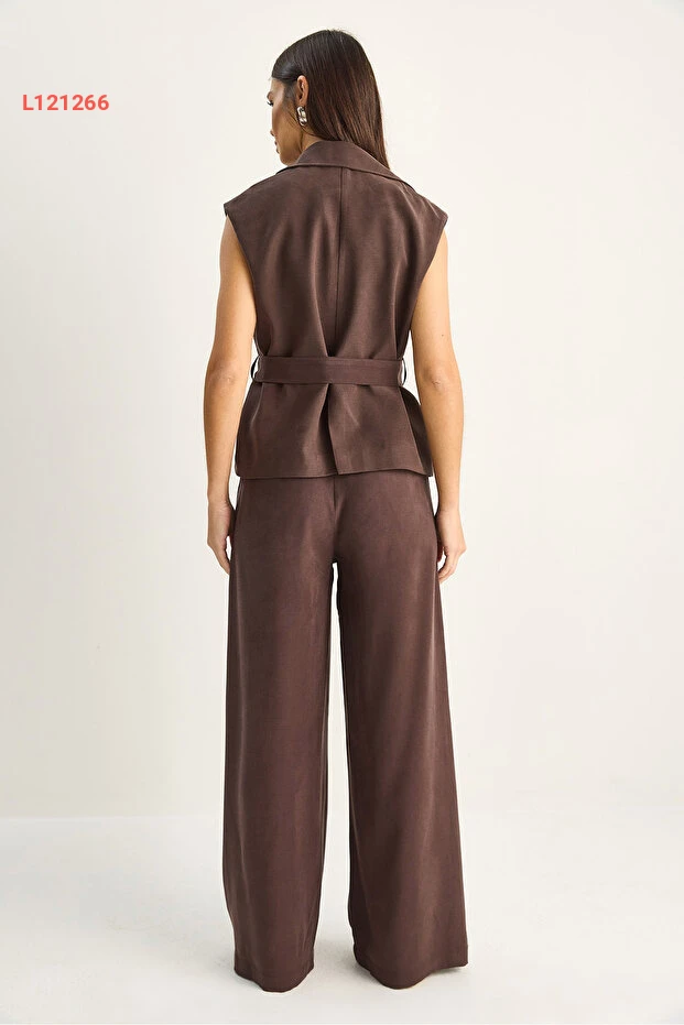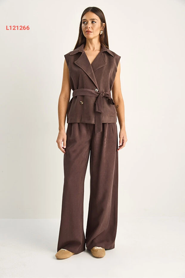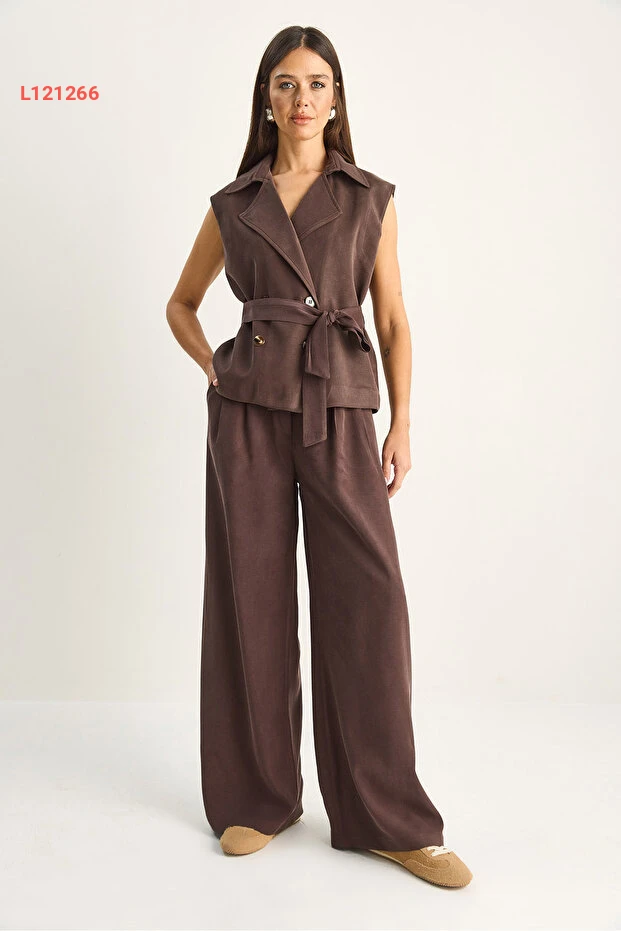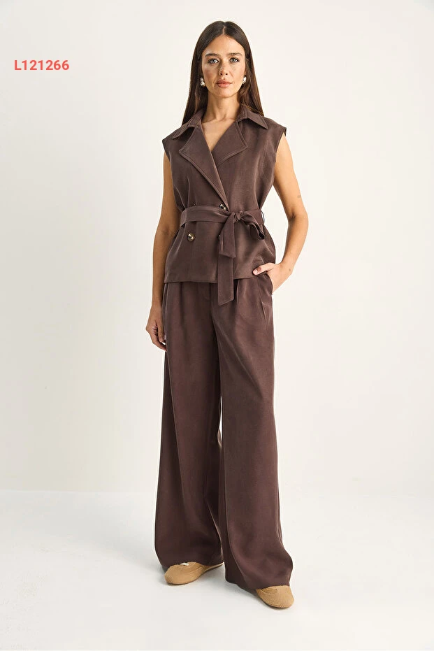 طقم موده بجيبة عالية الخصر بلازو و سترة كلاسيكية بحزام للصبايا من بيانكو لوتشي