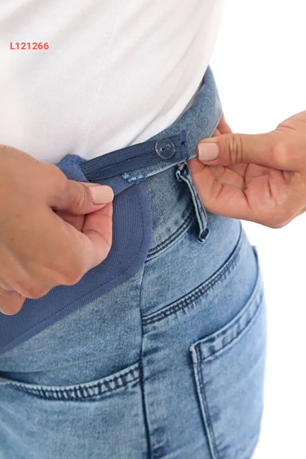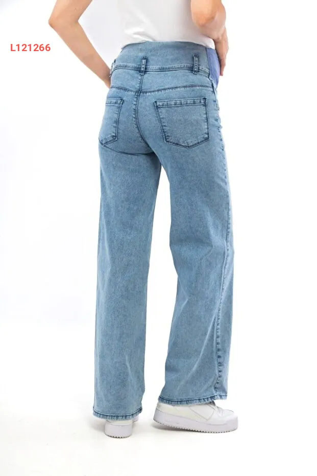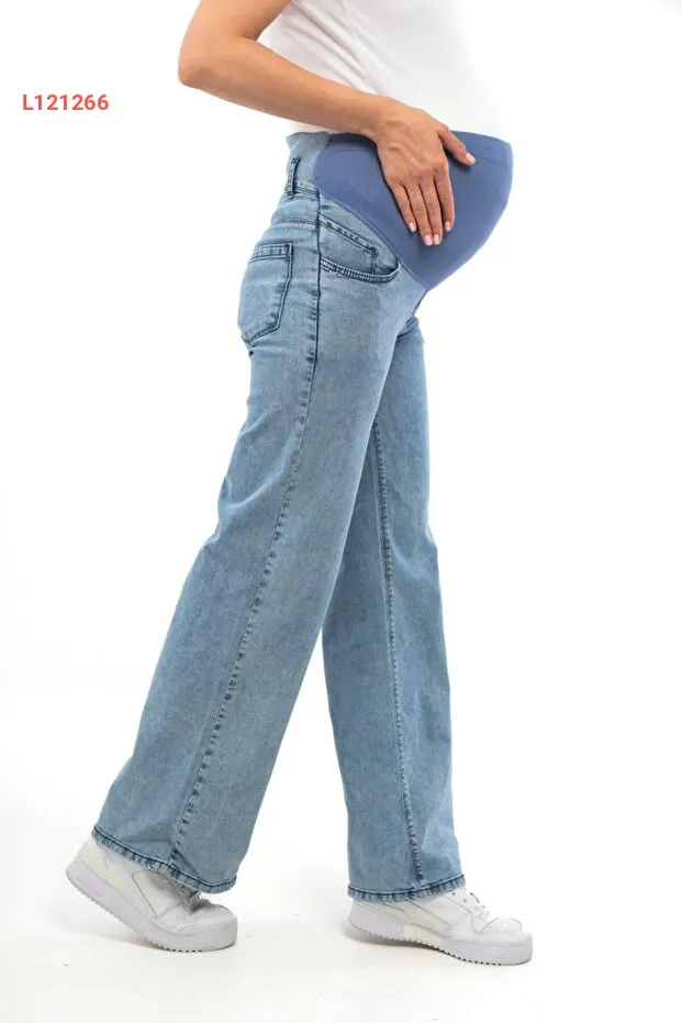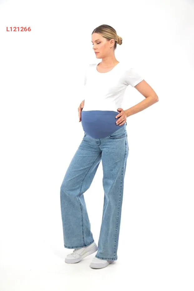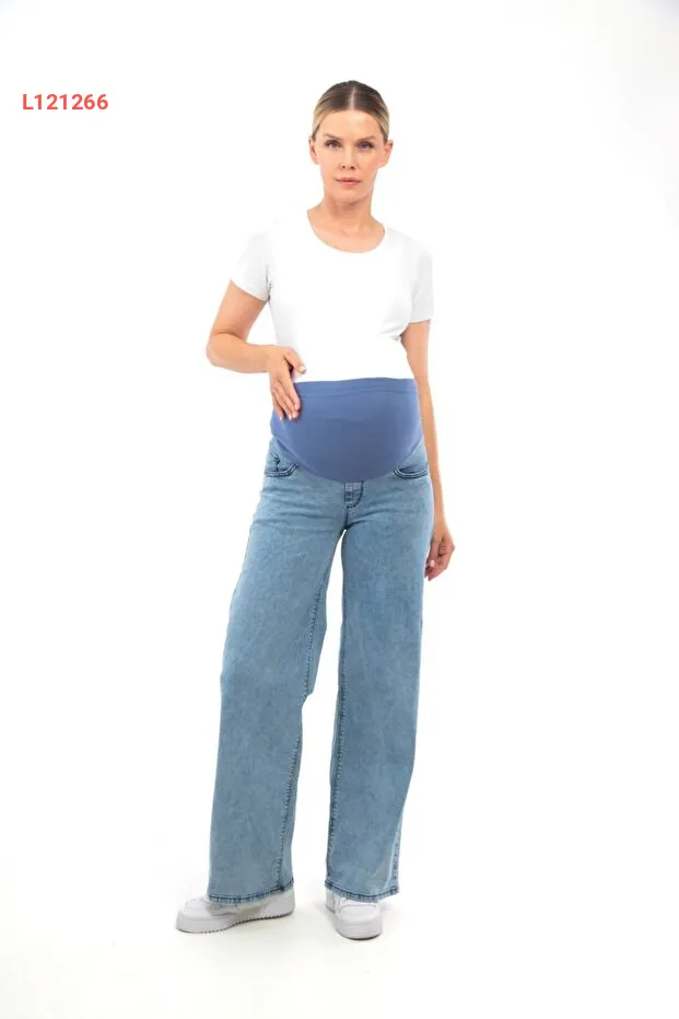 بنطال جينز واسع الساق قابل للتعديل بخصر مرن للحوامل - أزرق