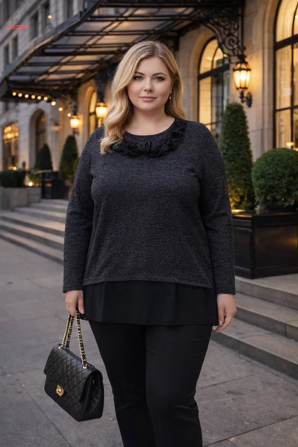 بلوزة قياس كبير مزينة ورد