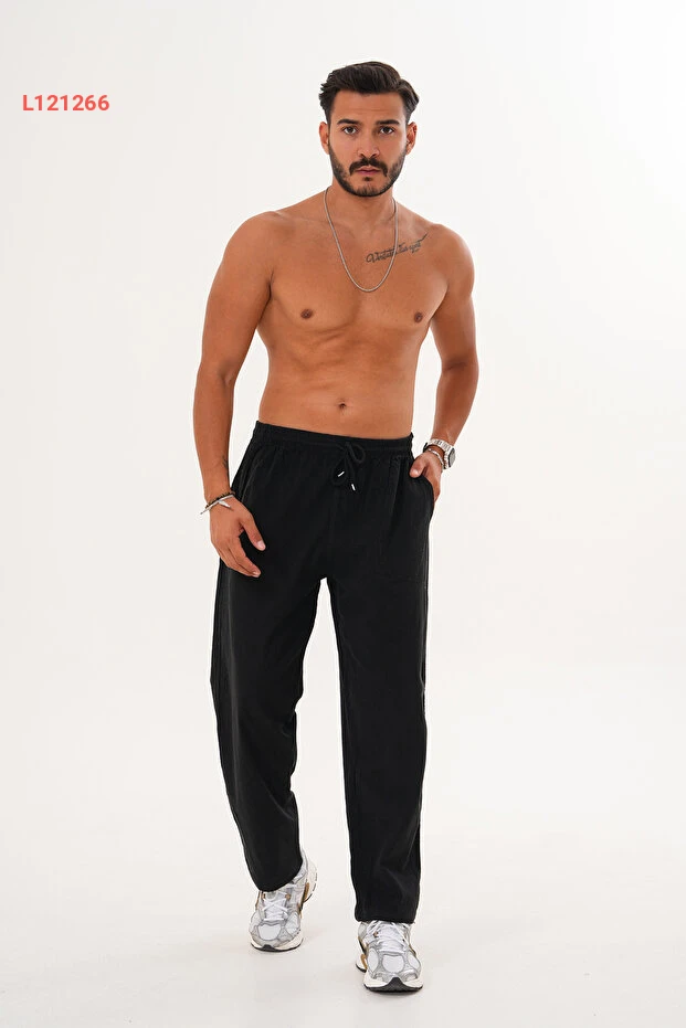 استمتع بالأناقة والراحة مع بنطال BigBrossBoutique المصنوع من مزيج القطن والكتان الأسود. يتميز بقصته الفضفاضة التي توفر لك حرية الحركة المثالية، مما يجعله الخيار الأمثل لإطلالاتك اليومية أو السهرات. ارتدِه مع قميص بسيط أو تي شيرت، واستعد لجذب الأنظار بأناقتك العصرية.
