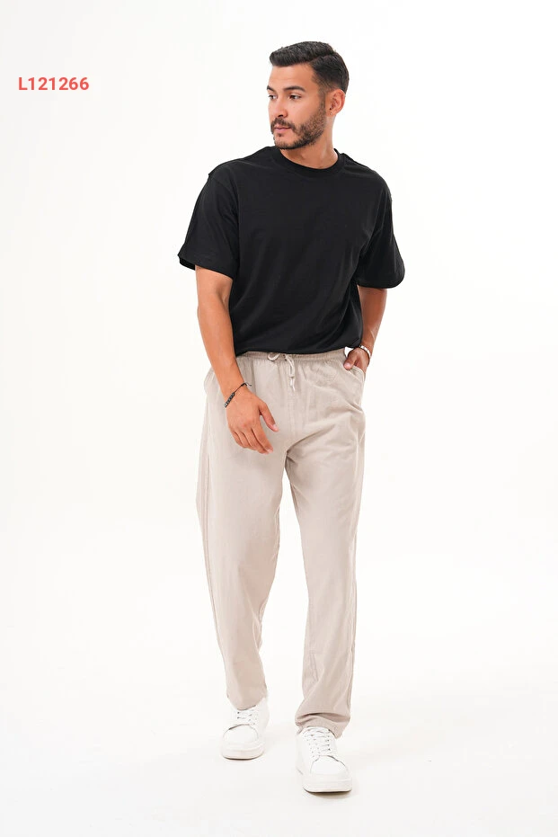 بنطلون رجالي مريح من مزيج القطن والكتان من بيج بروس بوتيك