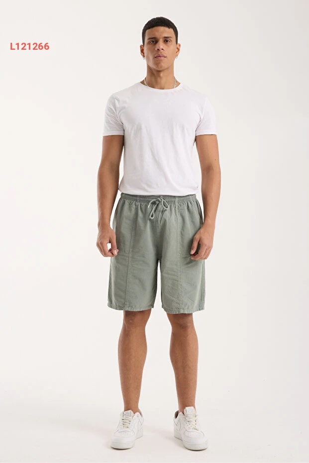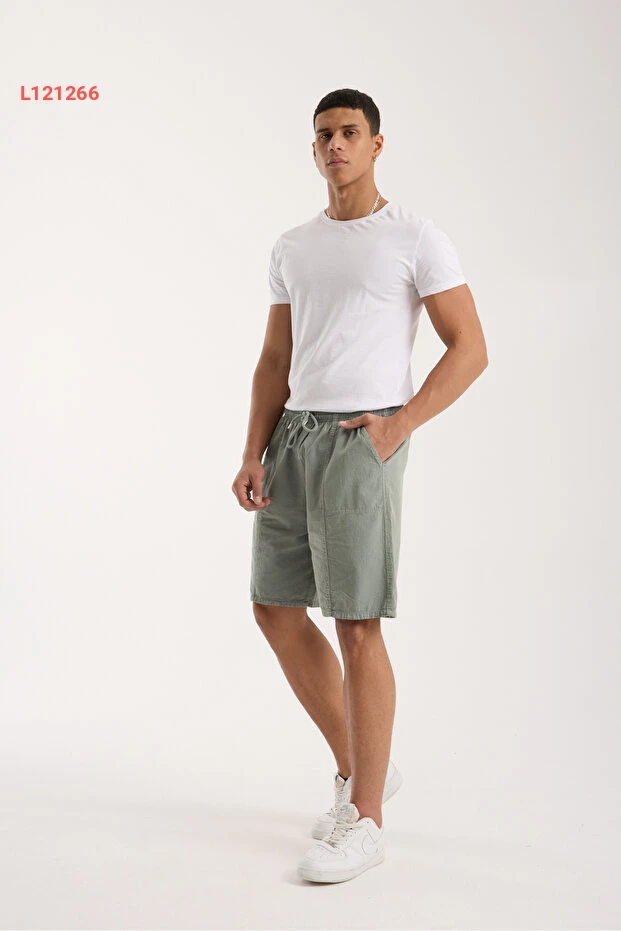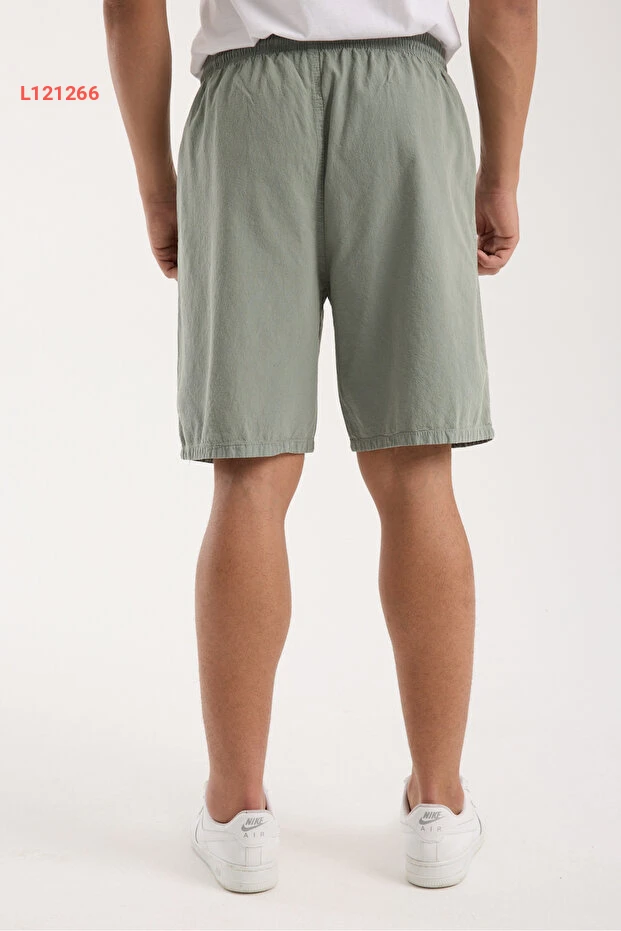 شورت رجال قطن ولينين بخامة عصرية بلون حقيقي من بيغ بروس بوتيك