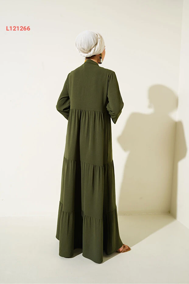 فستان حكاية التسبيح بخطوط عصرية - لون زيتي