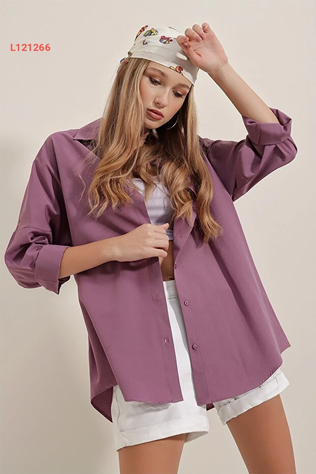 قميص بيسك طويل بحجم كبير 3900 ليلاء من برند بيجدارت