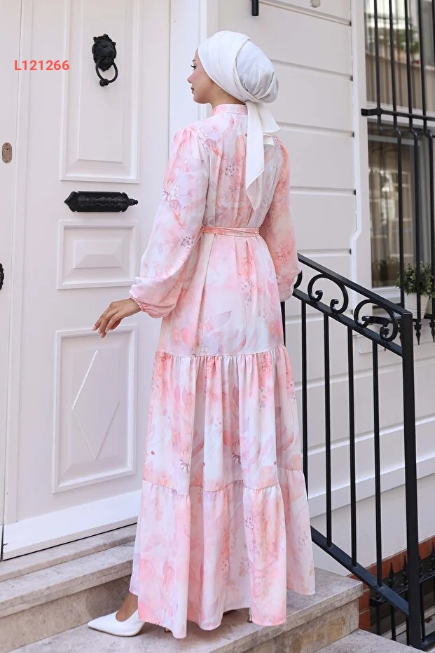 فستان تسليم طويل مزخرف للنساء - رقم 2586 - لون بودرة