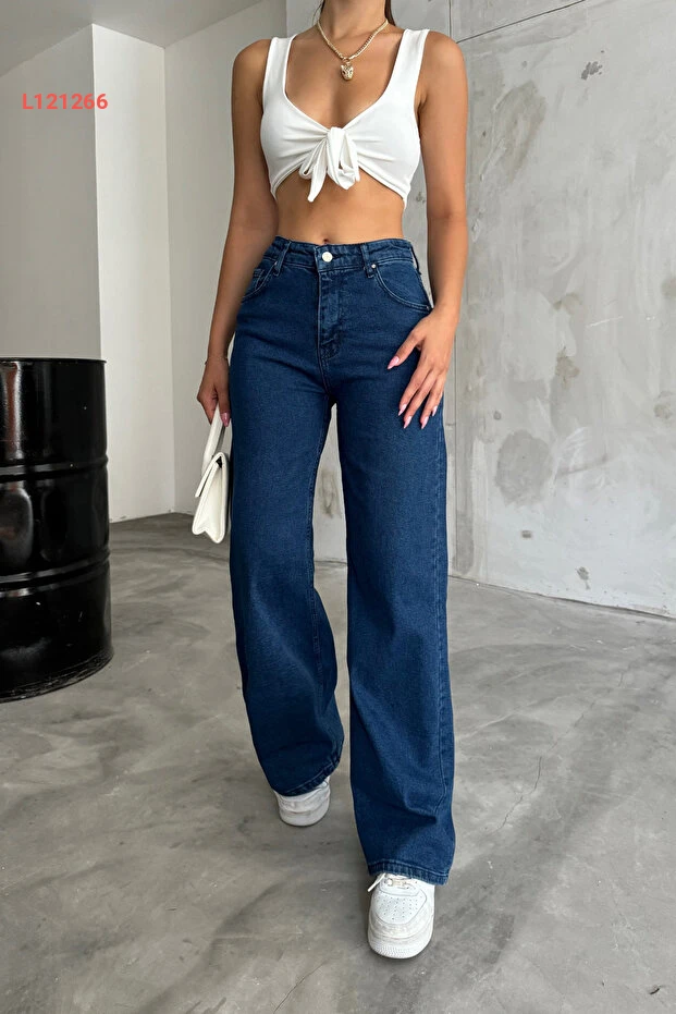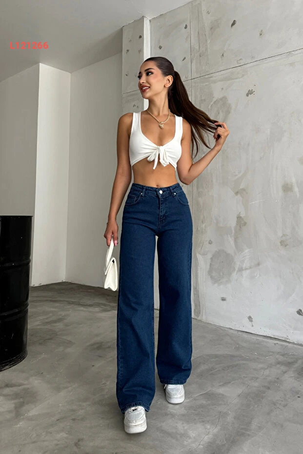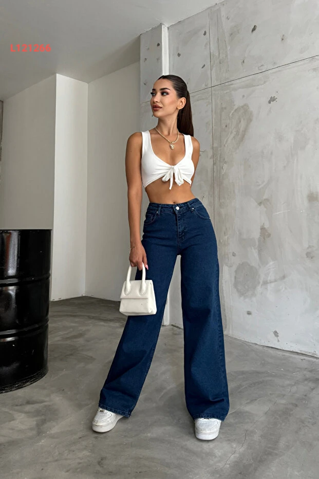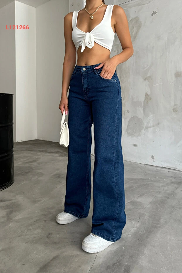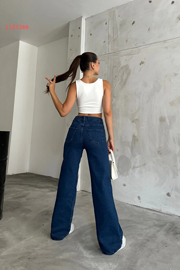 جينز بالازو عالي الخصر باللون الأزرق الداكن من بيكيليفي