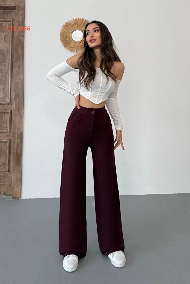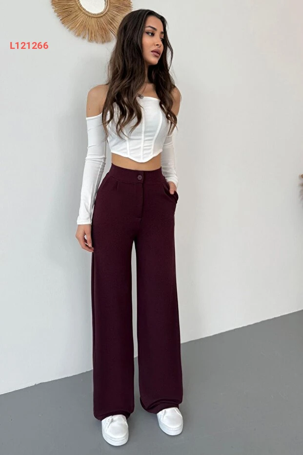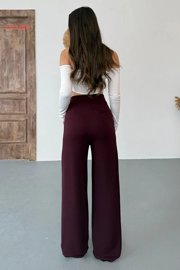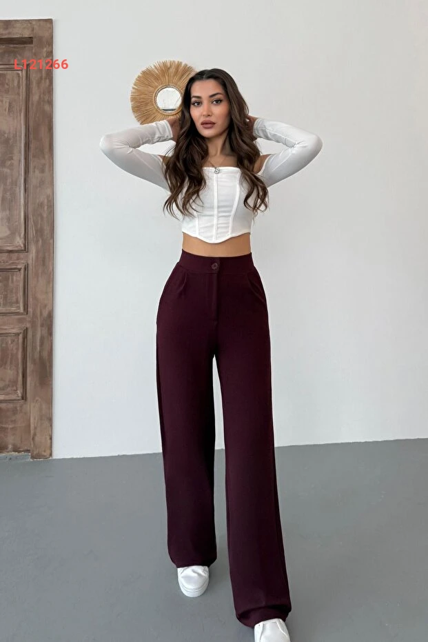 استمتعي بإطلالة أنيقة ومريحة مع بنطلون بالازو الواسع من BİKELİFE بلون بورغندي الجذاب. مصنوع من قماش ليكرا عالي الجودة، يتميز بمرونته ونعومته ليمنحك حرية الحركة طوال اليوم. تصميمه العصري يجعل منه خيارًا مثاليًا لمناسباتك اليومية أو المسائية، ليمنحك مظهرًا أنثويًا أنيقًا دون التضحية بالراحة!