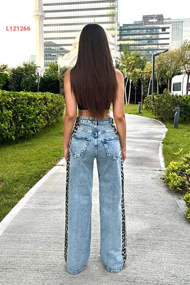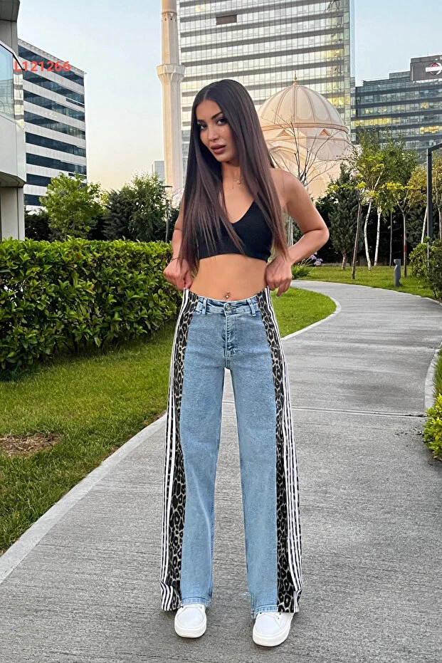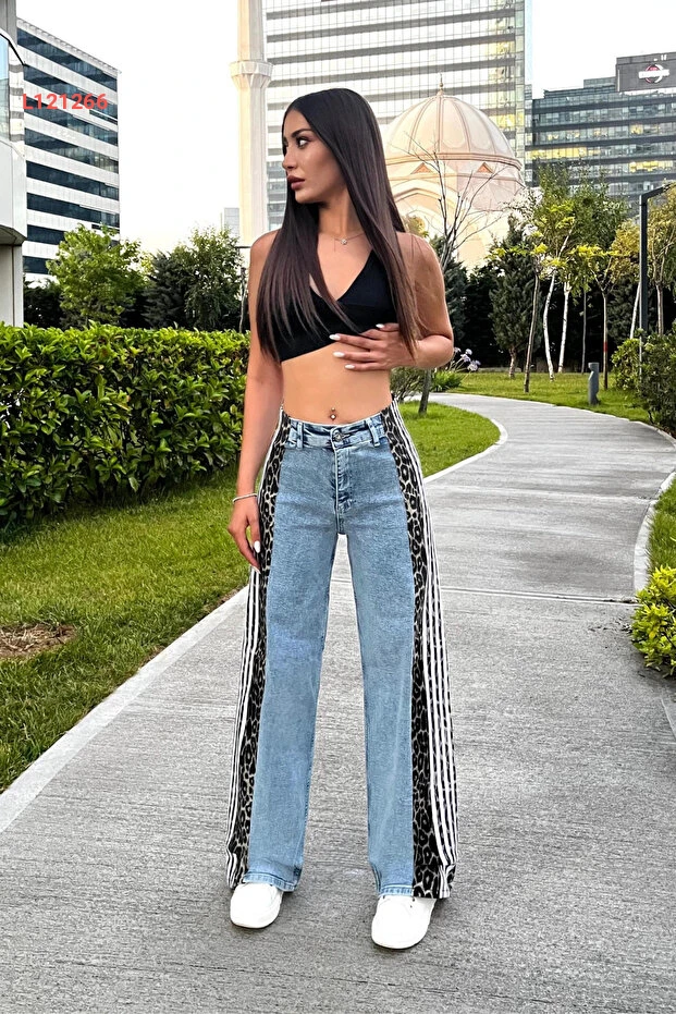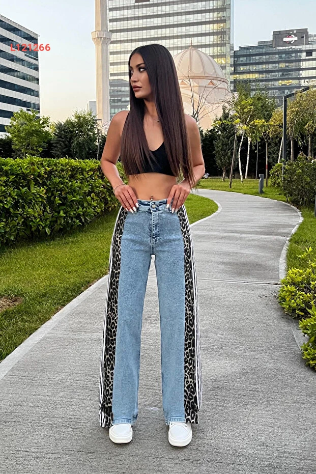 ارتقي بأناقتك مع جينز BİKELİFE النسائي عالي الخصر بتصميمه الفريد الذي يجمع بين طابع الفهد العصري والأناقة الكلاسيكية. تتميز الأرجل الواسعة بتنسيق جانبي أنيق يضفي لمسة عصرية، مما يجعله الخيار المثالي للارتداء اليومي أو لمناسباتك الخاصة. تجربة راحة لا مثيل لها مع خامة عالية الجودة تُظهر أنوثتك بأفضل صورة.