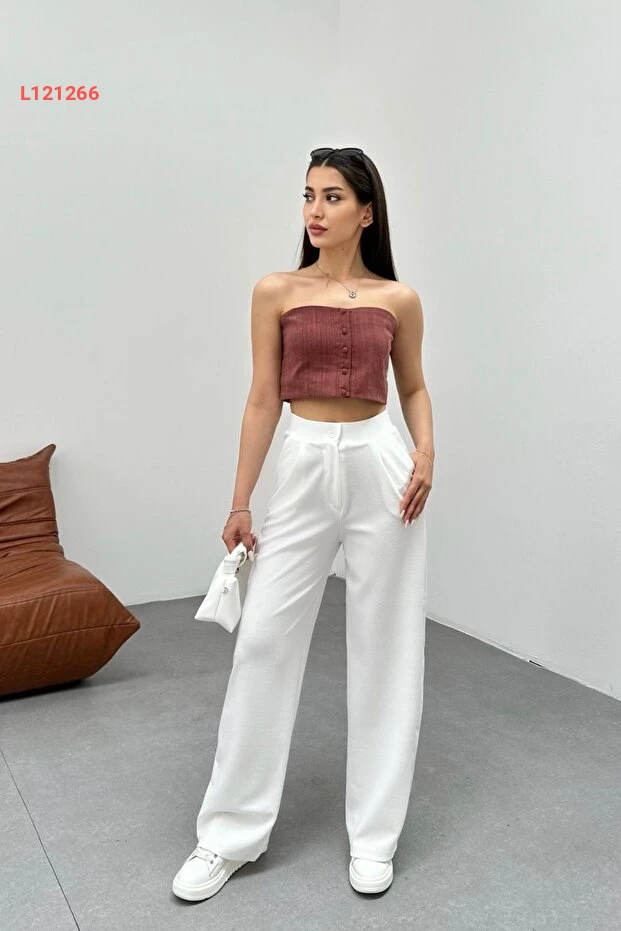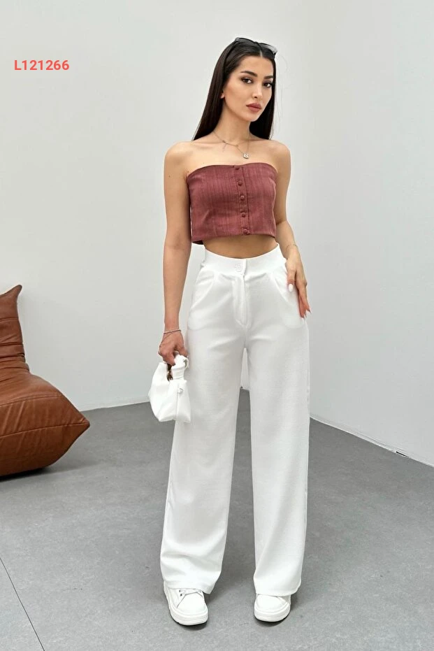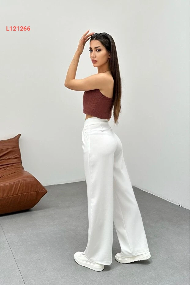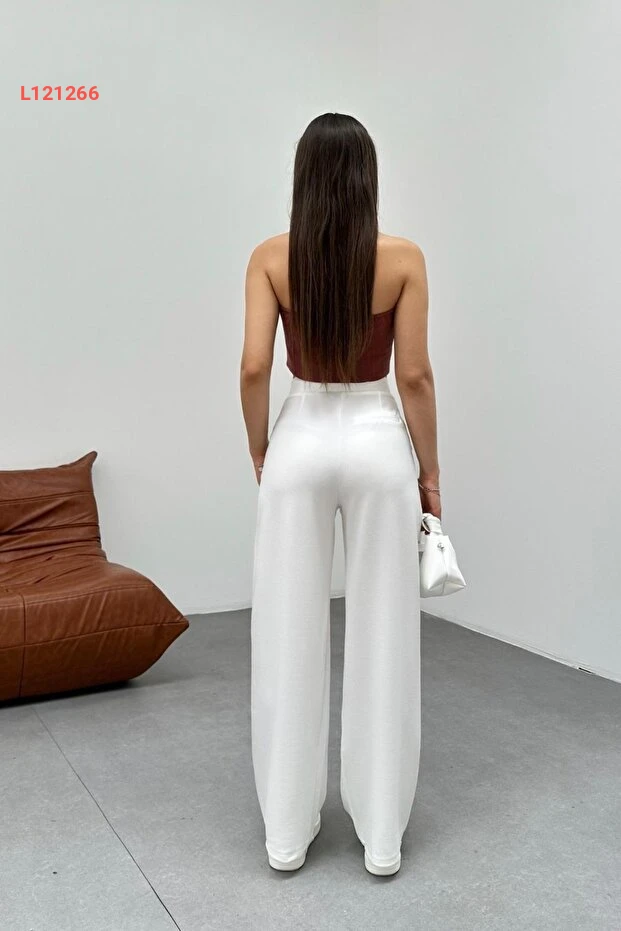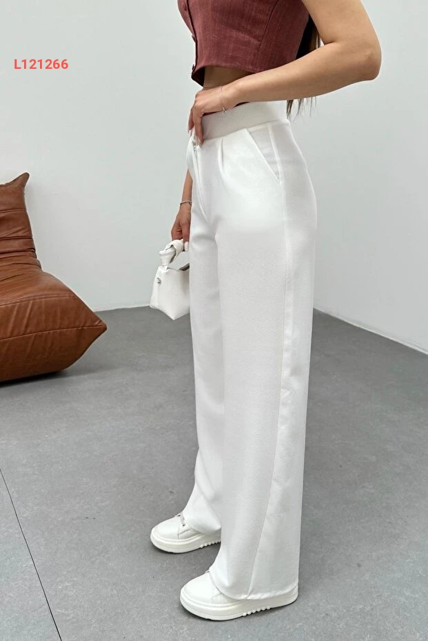 بنطال بالازو واسع الساق باللون الأبيض للنساء من بيكيليف