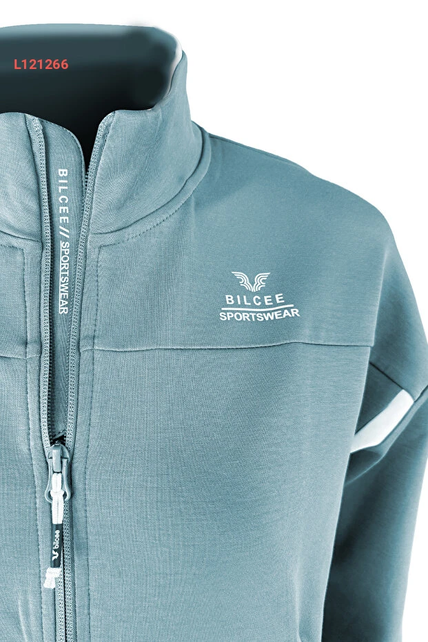 بيلس النسائي طقم رياضي أزرق بياقة مرتفعة 0693