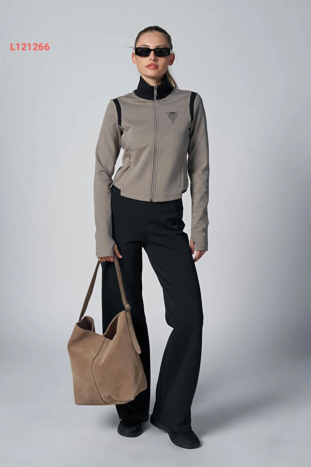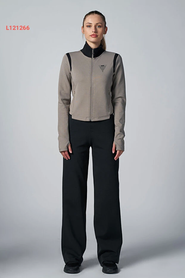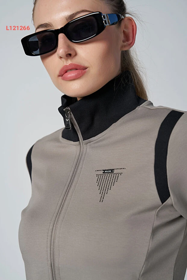 طقم رياضي نسائي باللون البيج مع سترة قصيرة وسروال بولو 4560