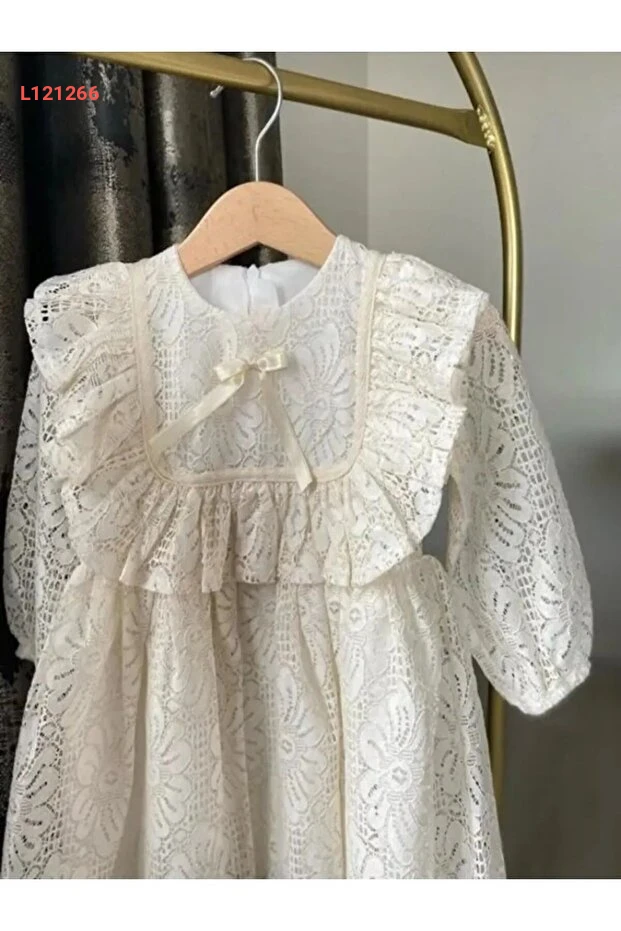 فستان دانتيل أبيض مزين بالدانتيل للفتيات الصغيرات - مثالي للعيد والأعراس والحفلات