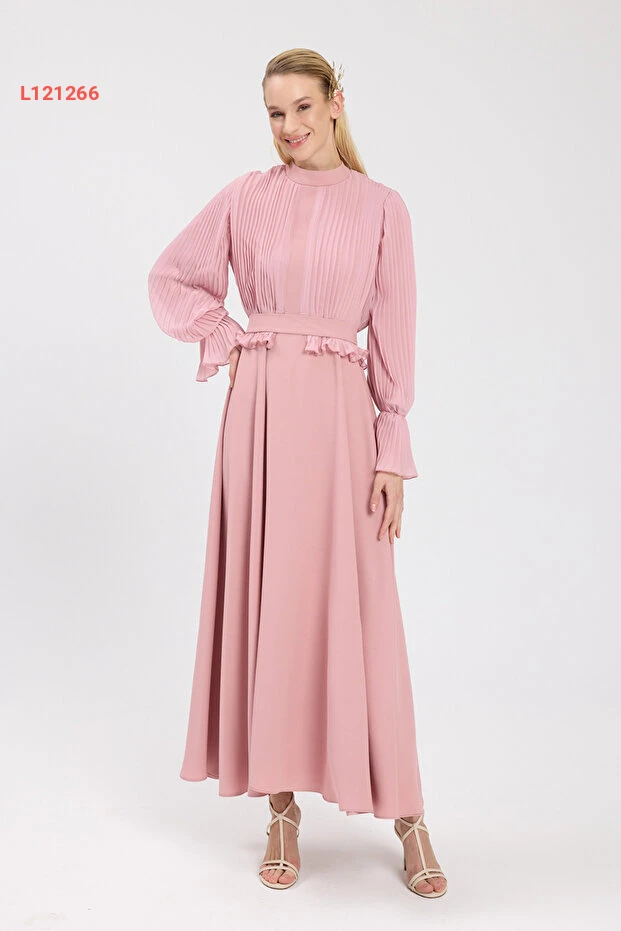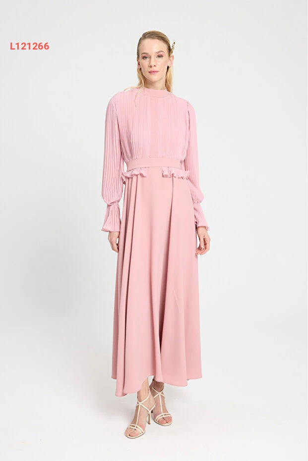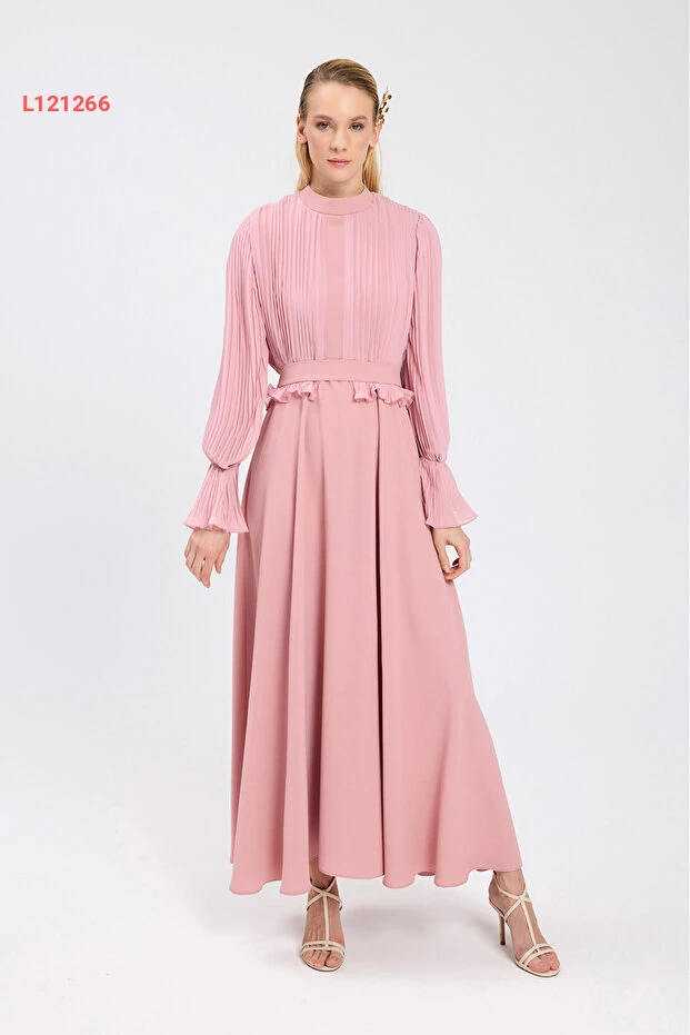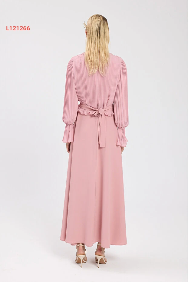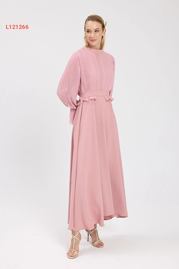 فستان كريب شيفون مطوي بتصميم معاصر من بيرغول بكتاش