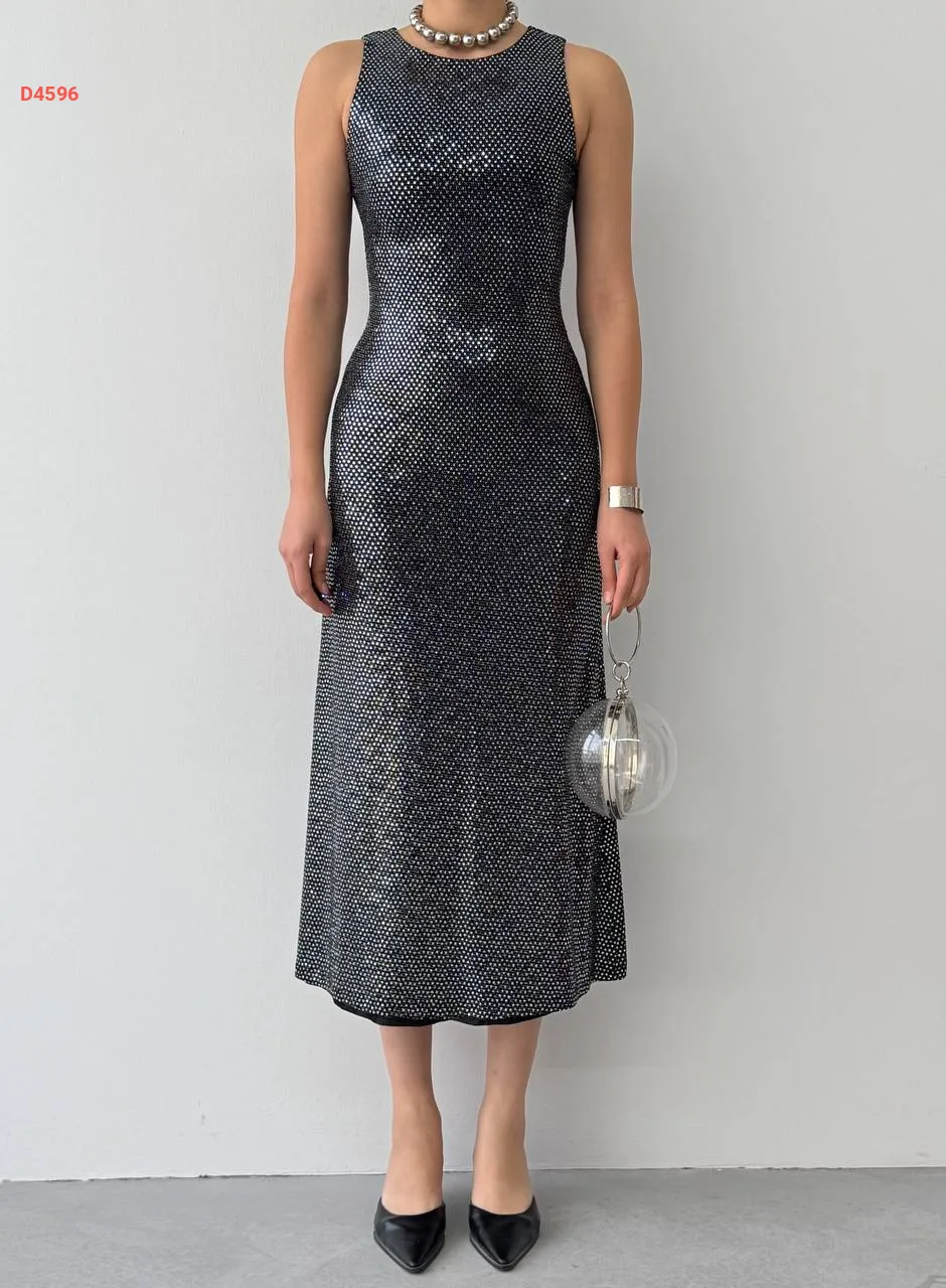 فستان أسود حفر مرصع بأحجار