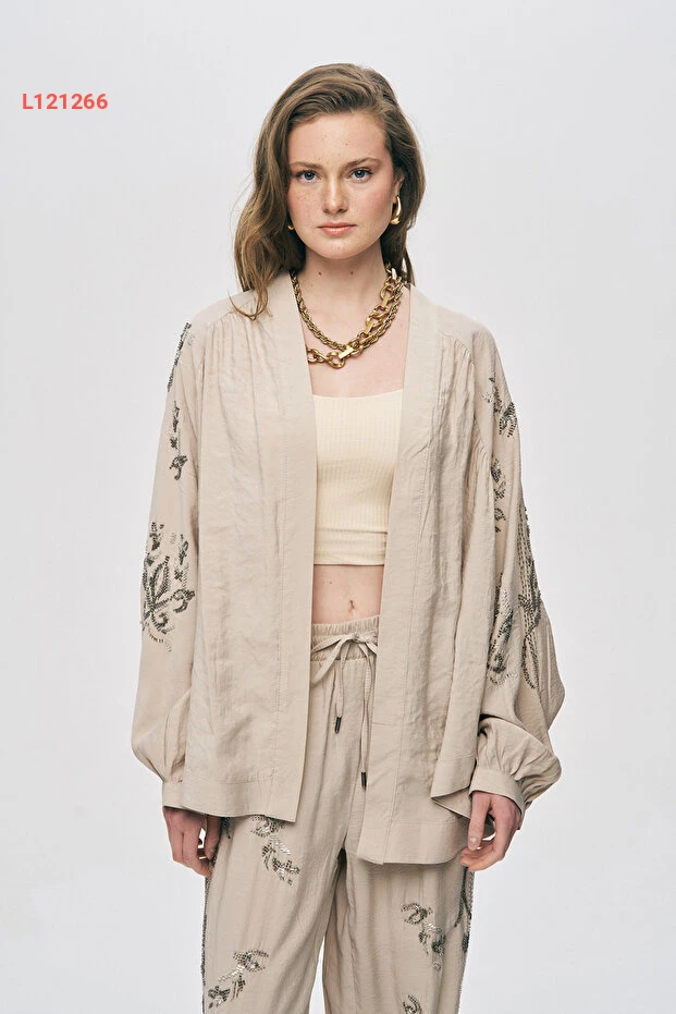 استمتعي بإطلالة فريدة ومريحة مع كيمونو "Orfeo Negro" الأنيق والمزين بالخرز. يتميز بتصميمه الواسع الذي يمنحك حرية الحركة والمظهر العصري المميز، بينما تضيف تفاصيل الخرز لمسة من الفخامة والجاذبية لأي مناسبة. ارتدي هذا الكيمونو لتحصلي على لمسة أنثوية متجددة في خزانتك!