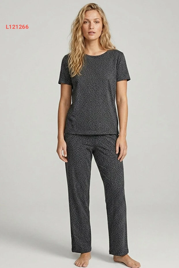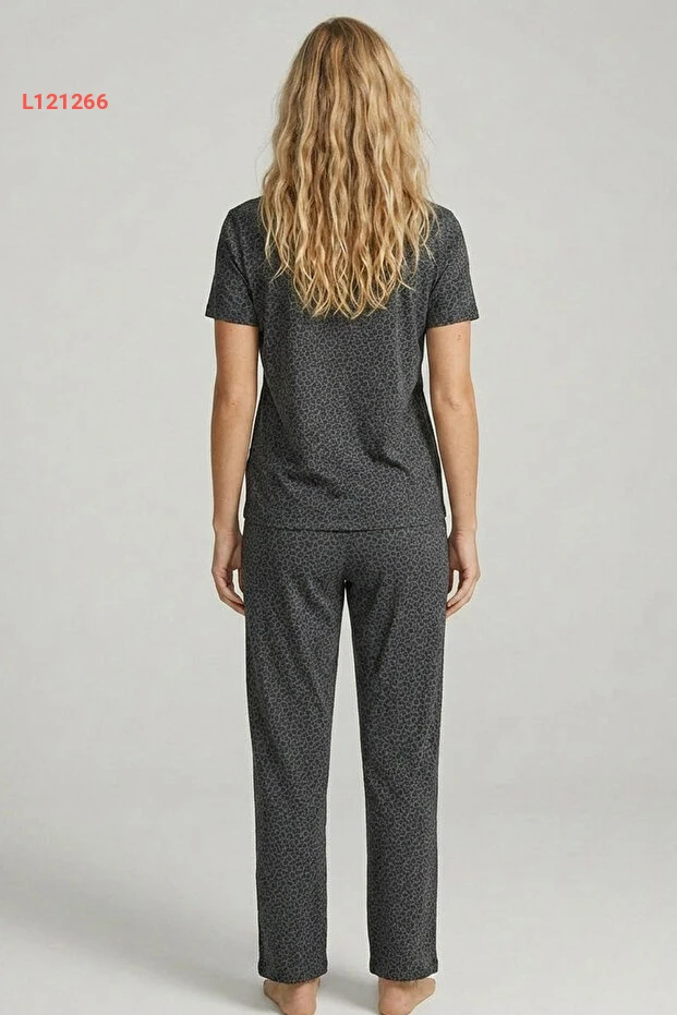طقم بيجامة مزخرف بنمط الفهد باللون الرمادي الداكن من سيياه إنجي 7996