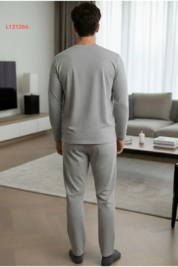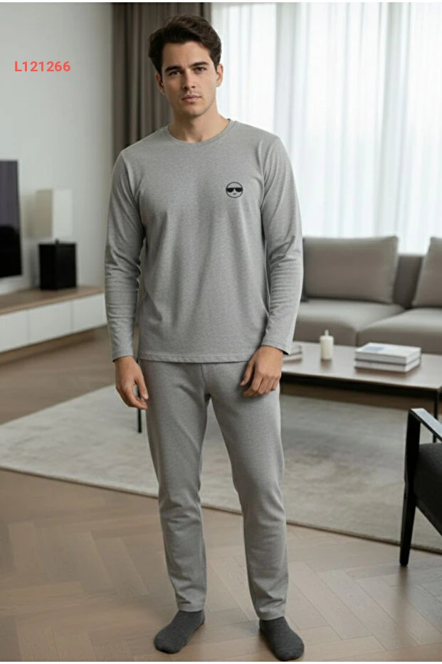 بيجامة رجالية مطرزة بأكمام طويلة من سيياه إنسي - رمادي مائل إلى الأسود 7795