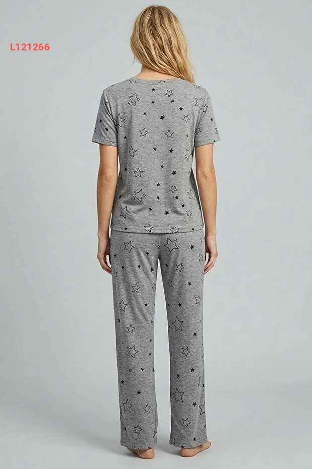 بيجامة قصيرة الأكمام لنقش النجوم بلون رمادي مختلط من سيياه إنجي 7612