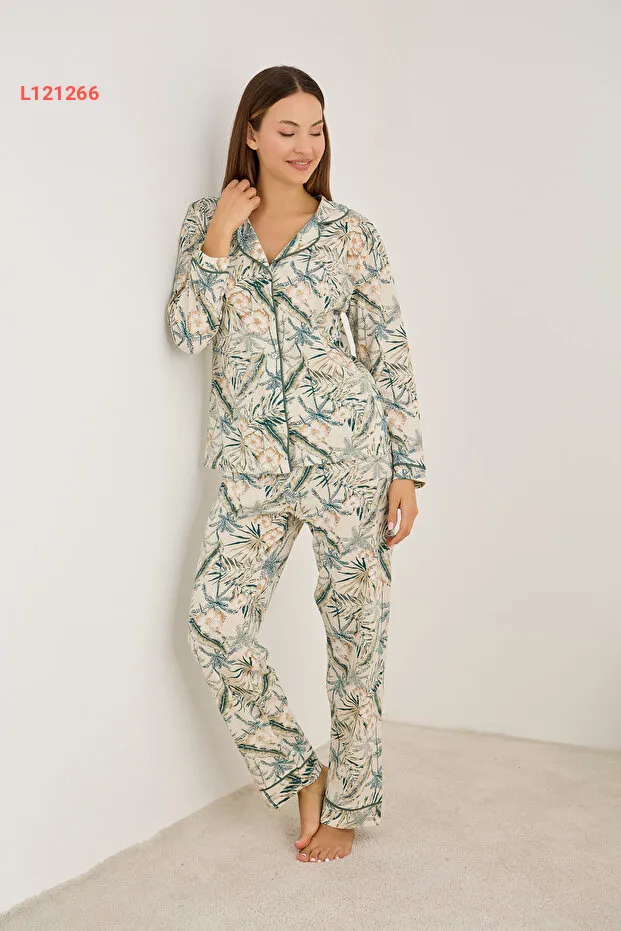 استمتع بنوم هانئ مع بيجاما Siyah İnci بتصميمها الفريد من الأوراق الخضراء، حيث تجمع بين الراحة والأناقة في آن واحد. يتميز هذا الطقم ذو الأكمام الطويلة بأزرار أنيقة وحواف مميزة، مما يمنحك مظهرًا جذابًا حتى أثناء الاسترخاء في المنزل. اجعل لياليك أكثر راحة وبهجة مع هذا التصميم العصري!