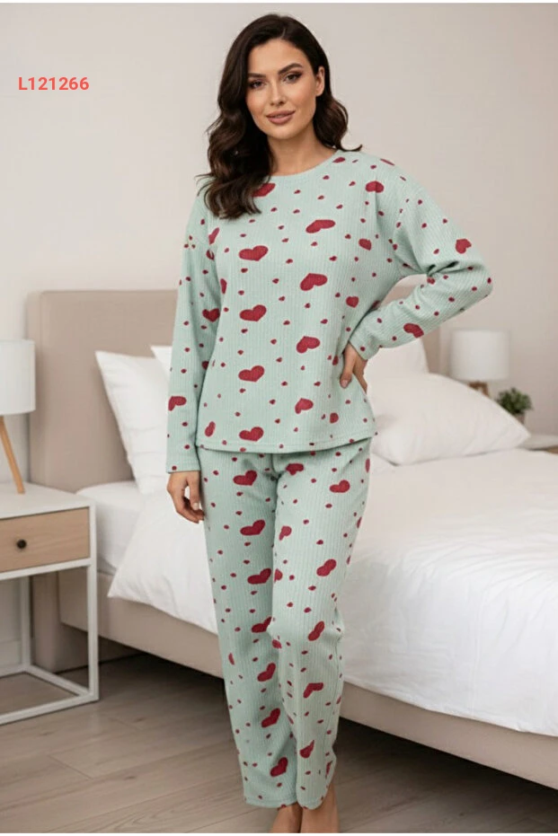 استمتع بأجواء دافئة ومريحة مع بيجامة Siyah İnci ذات التصميم الأنيق بقلبين أخضر وأحمر! مصنوعة من القطن الناعم والمريح، توفر لك شعورًا رائعًا طوال فصل الشتاء، بينما تضمن لك اللمسة الجمالية العصرية. اجعل ليالي شتائك ساحرة مع هذه البيجامة الفاخرة!