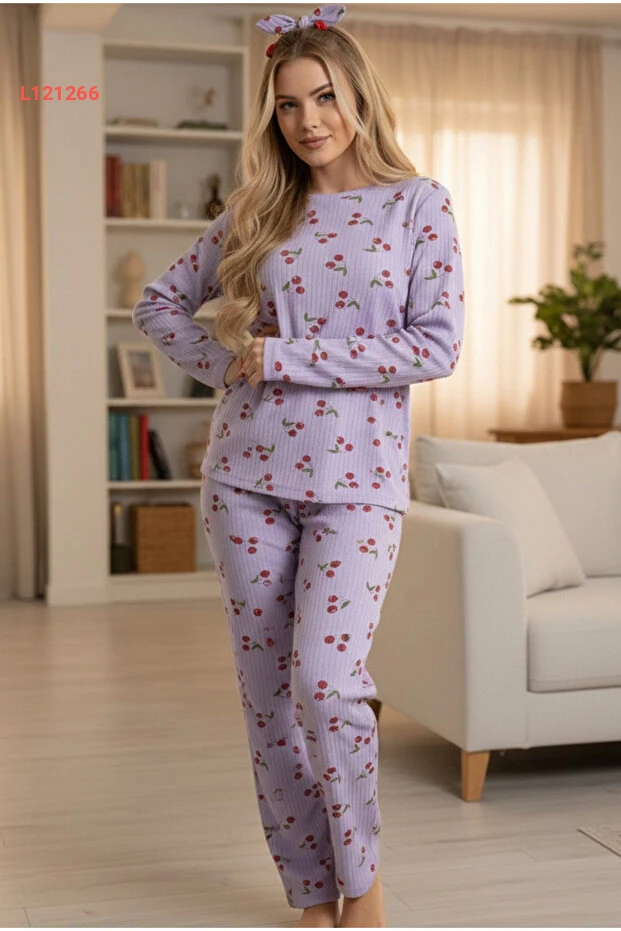 بيجامة شتوية مزخرفة بالكرز باللون الأرجواني من سيياه إنسي 7977