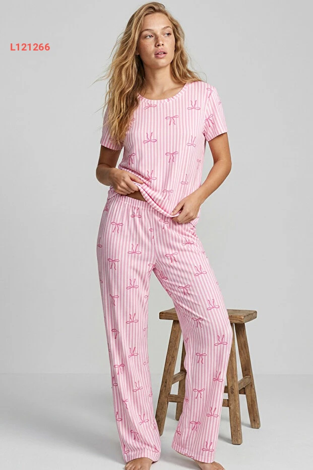 استمتع بالراحة والأناقة مع بيجاما Siyah İnci بستايل الخطوط الوردية وبنقشة الفيونيك! مصنوع من قماش ناعم وخفيف، يوفر لك إحساساً رائعاً طوال اليوم، مما يجعله مثاليًا لجميع مواسم السنة. اختر الأناقة والراحة مع هذا التصميم العصري الذي يناسب جميع الأذواق.