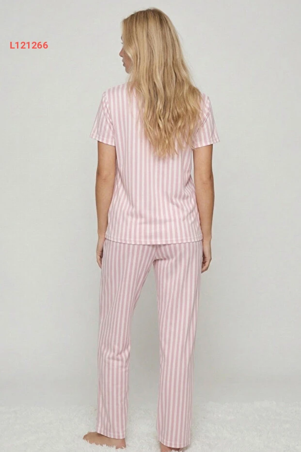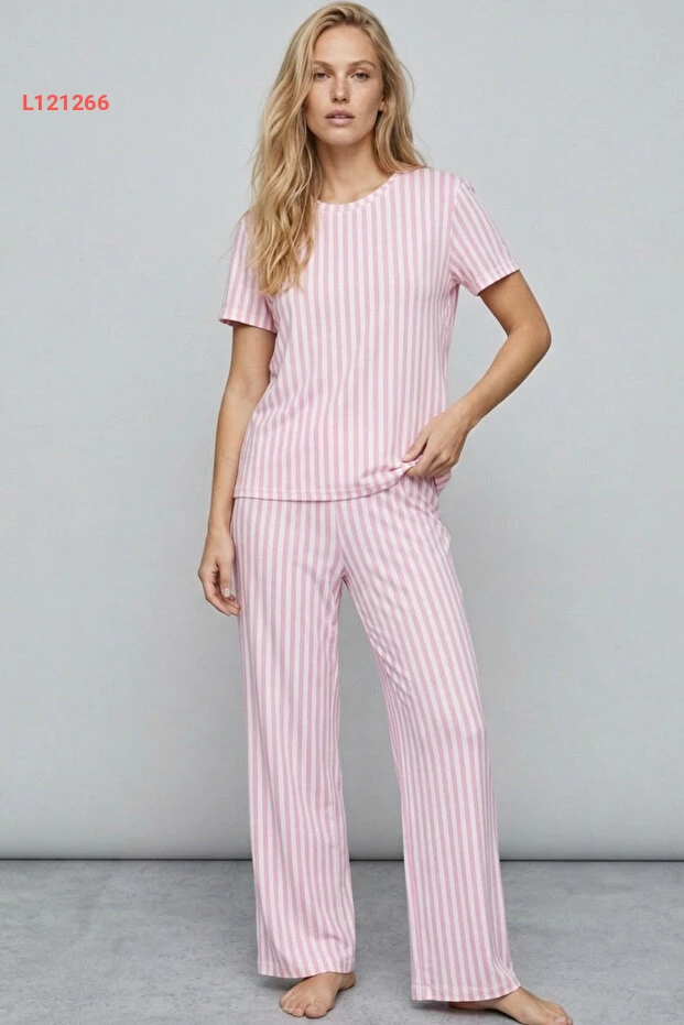 بيجاما ناعمة مزخرفة بخطوط وردية وبيضاء من علامة سيياه إنجي
