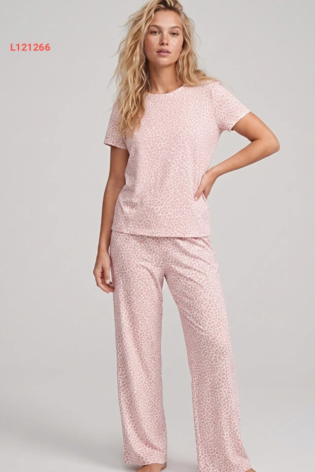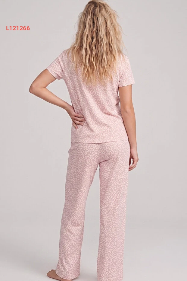 بيجاما قطنية بنقشة الفهد من سياه إنجي - بطول أبيض مع سمك السلمون