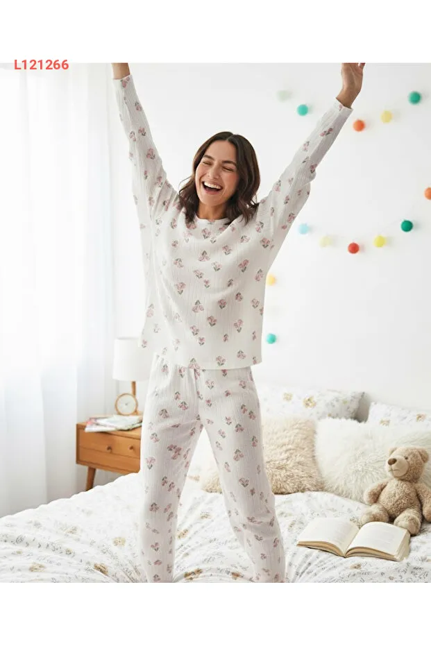 استمتع بأجواء الشتاء الدافئة مع طقم البيجامة Siyah İnci بتصميم لال أبيض أنيق. مصنوع من قماش قطني ناعم يضمن لكِ راحة لا مثيل لها، ويأتي بخامة مضلّعة تمنحك دفئًا إضافيًا. مثالي لأمسيات من الاسترخاء، يمنحك هذا الطقم مظهرًا جذابًا وشعورًا مريحًا طوال الليل.