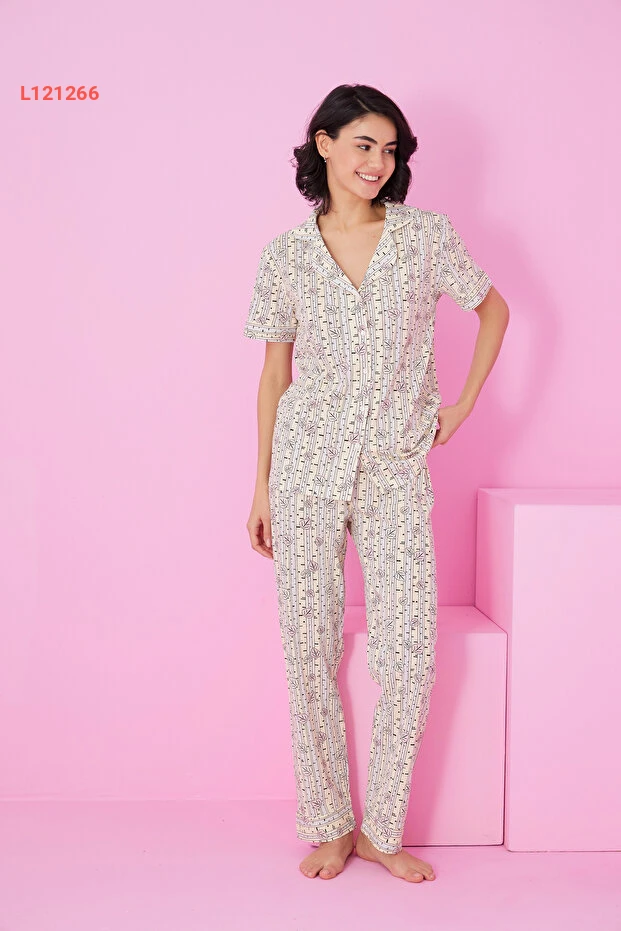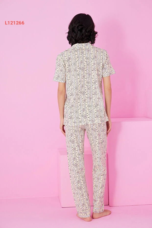 بيجامة قصيرة الأكمام مزينة بخطوط صفراء من سياه انجي
